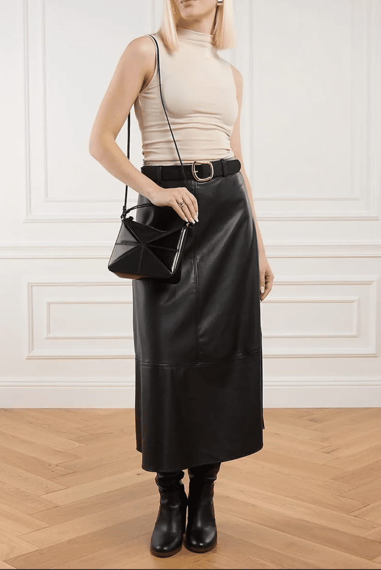A sculptural leather crossbody with a distinctive triangular silhouette, merging modern design with artisanal craftsmanship for a bold, refined statement.