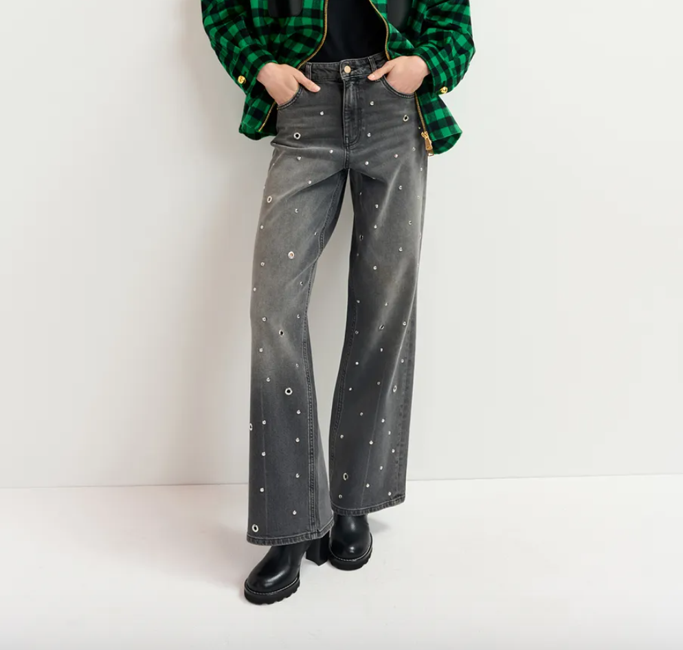 Step out in style with the Essentiel Antwerp eyelet cutout jeans, featuring playful silver trim details that add a sparkling edge to your look. These jeans combine trendy cutouts with a hint of shimmer, perfect for turning heads while staying comfortable. Elevate your casual wardrobe with a pair that’s as fun as it is fabulous.