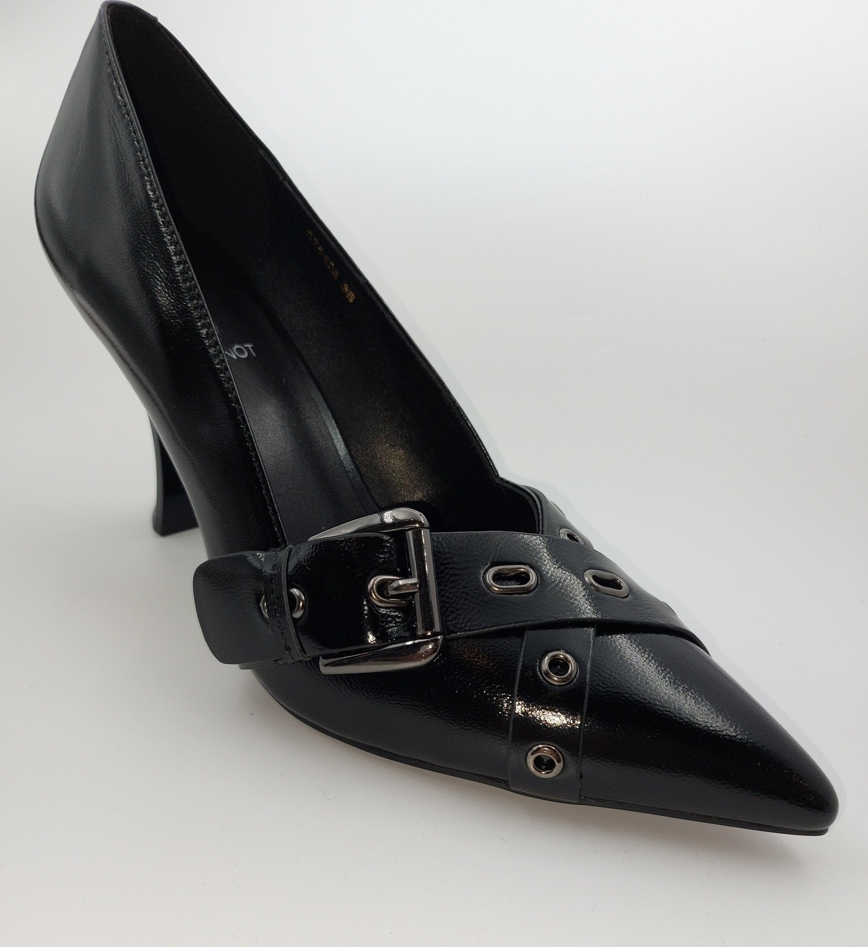 Elevate your ensemble with the Jeannot 542, featuring a sleek 8mm heel that offers subtle lift and elegance. The delicate buckle detail adds a refined touch, seamlessly blending style with sophistication. Perfect for both professional settings and stylish outings, this shoe balances comfort and chic design effortlessly.