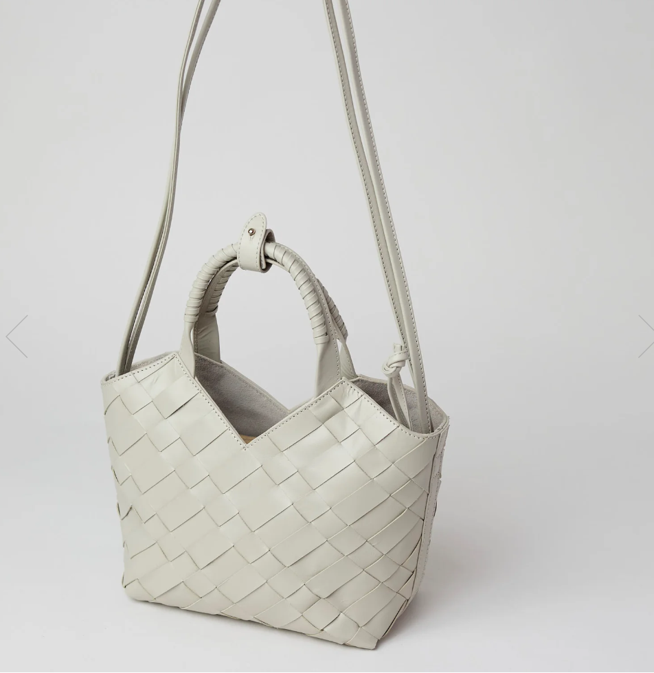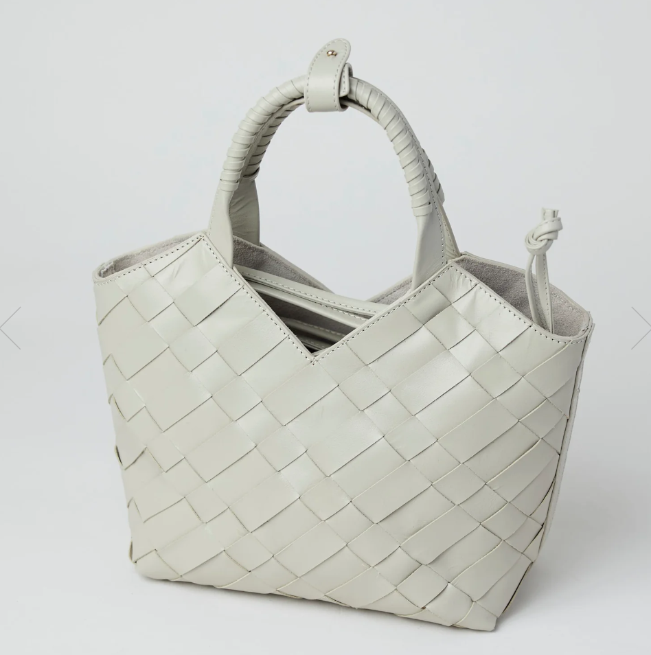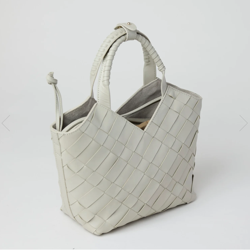 A refined handwoven small shopper in Softy Antique Nappa Calf Leather, featuring a detachable cotton insert, drawstring closure, and tubular shoulder straps. Designed for everyday elegance, it balances structure with artisanal softness.