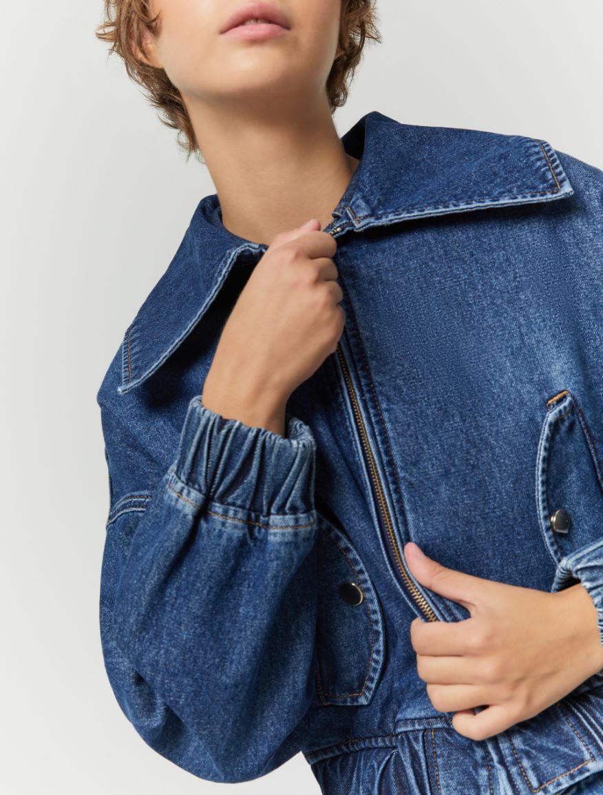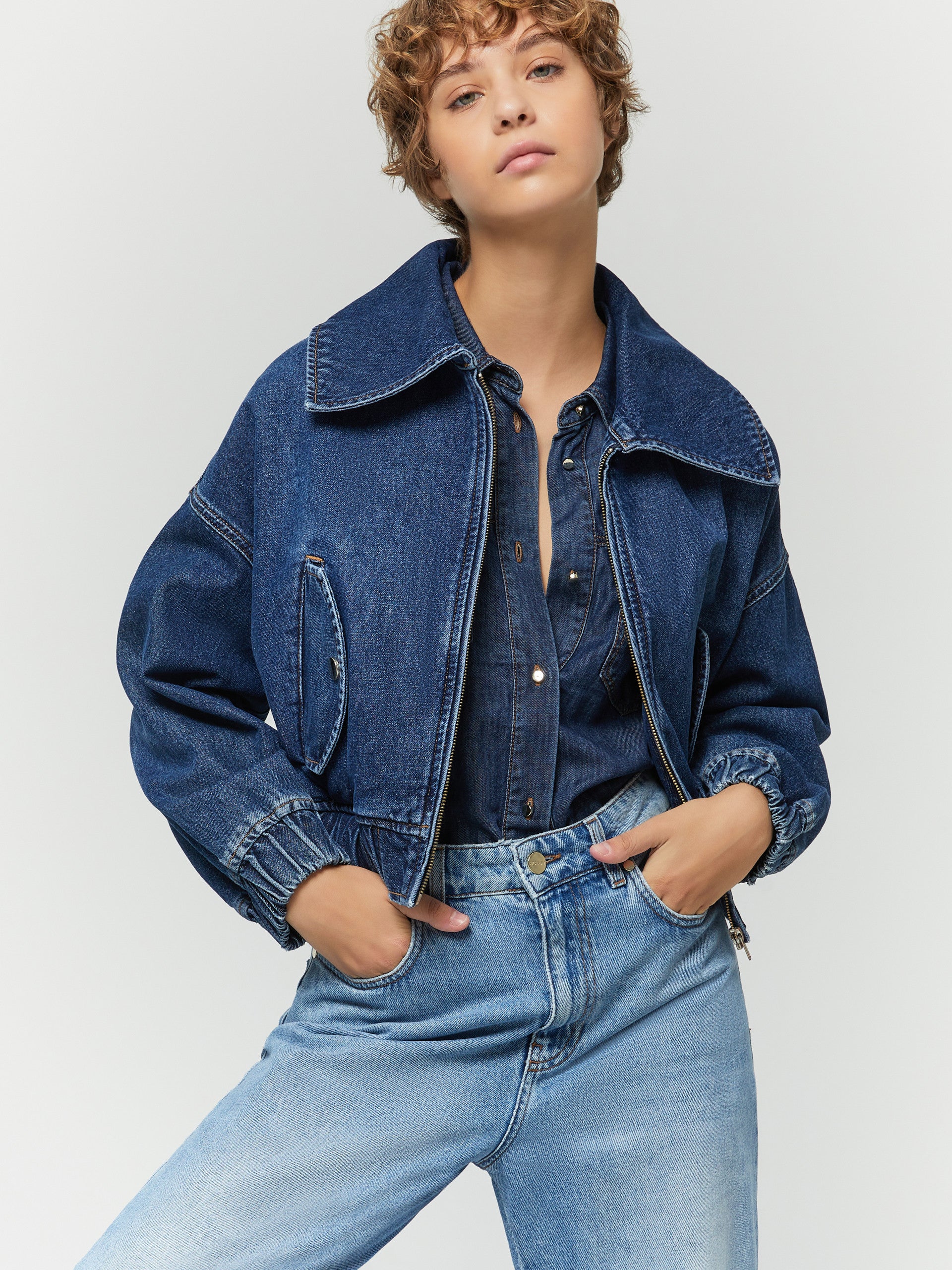 iBlues FIVER denim jacket—a stylish and modern take on the classic bomber jacket.