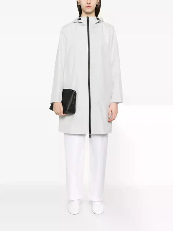 This Herno raincoat features a drawstring hood, long sleeves, a front two-way zip fastening, and two side zip-fastening pockets.