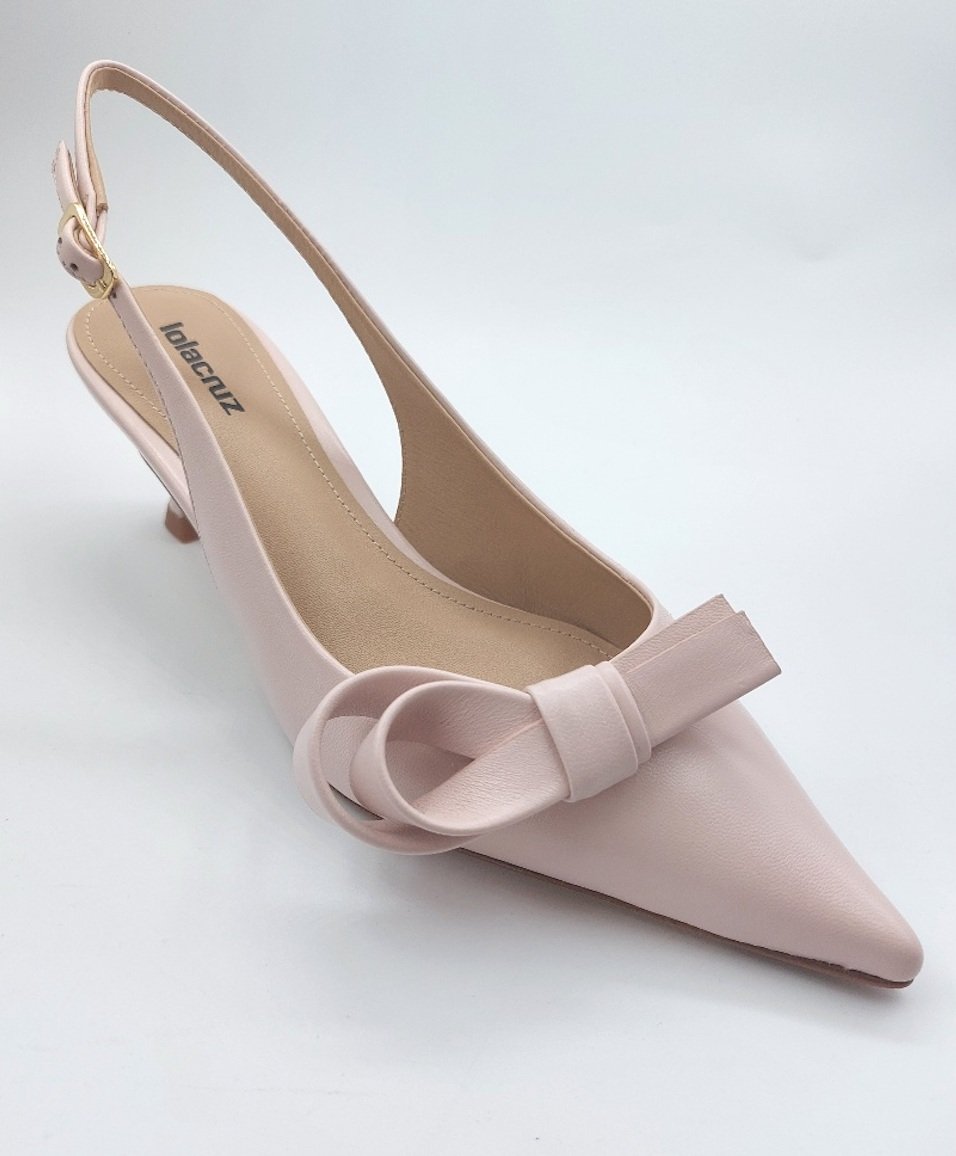 Kitten heel sling back with bow soft rose pink 55mm heel