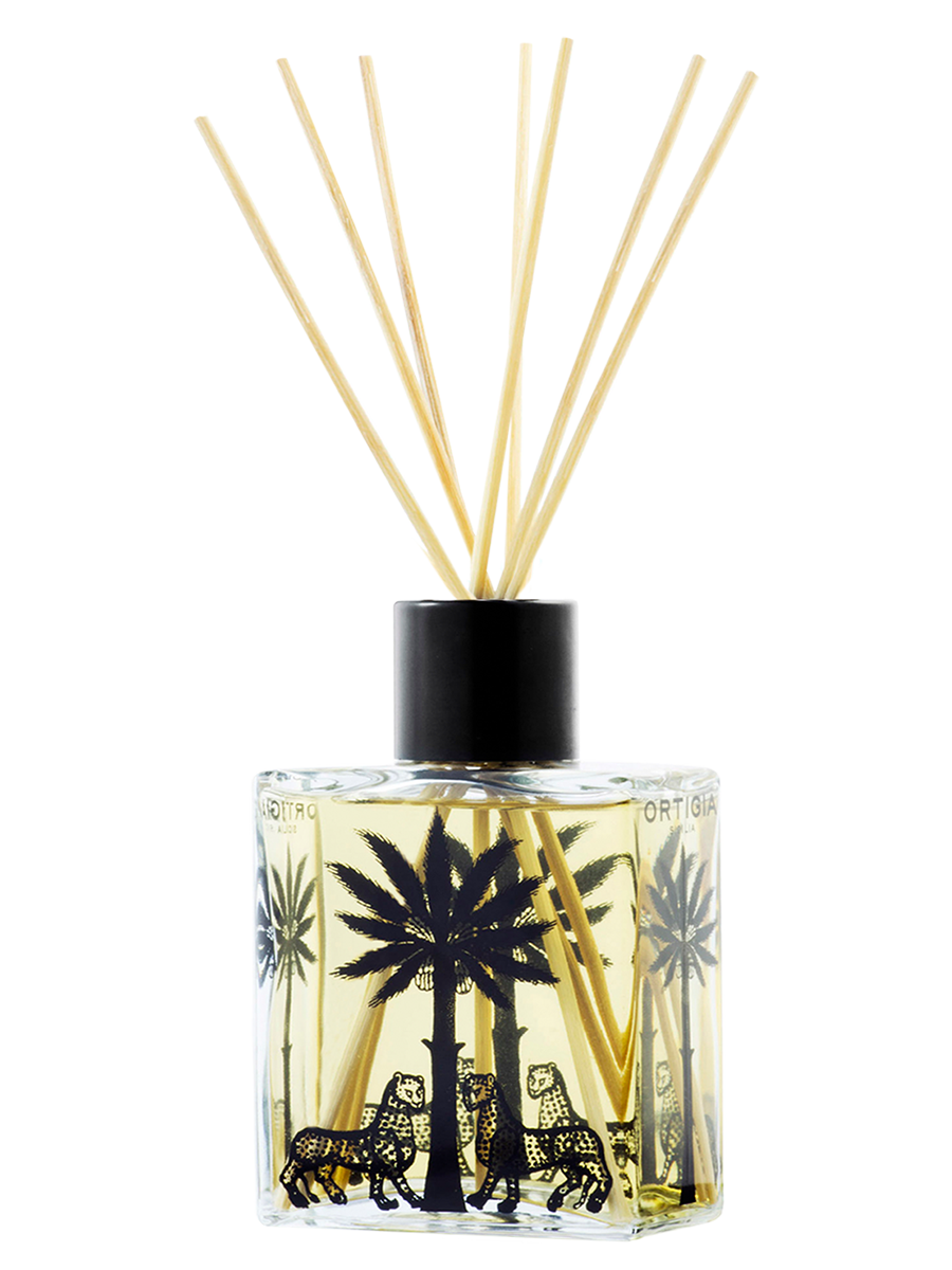 The diffuser uses natural reeds in a decorative signature bottle; the scent is passively released through the reeds.