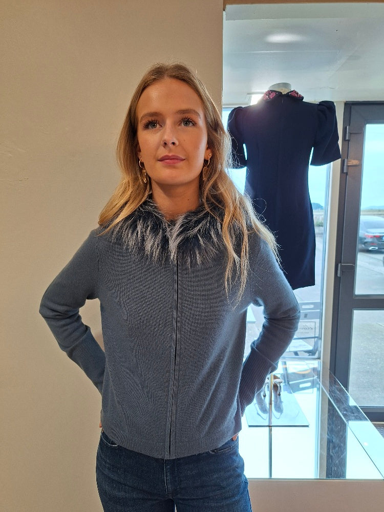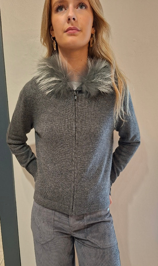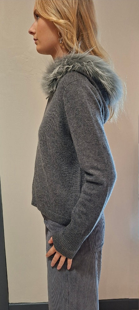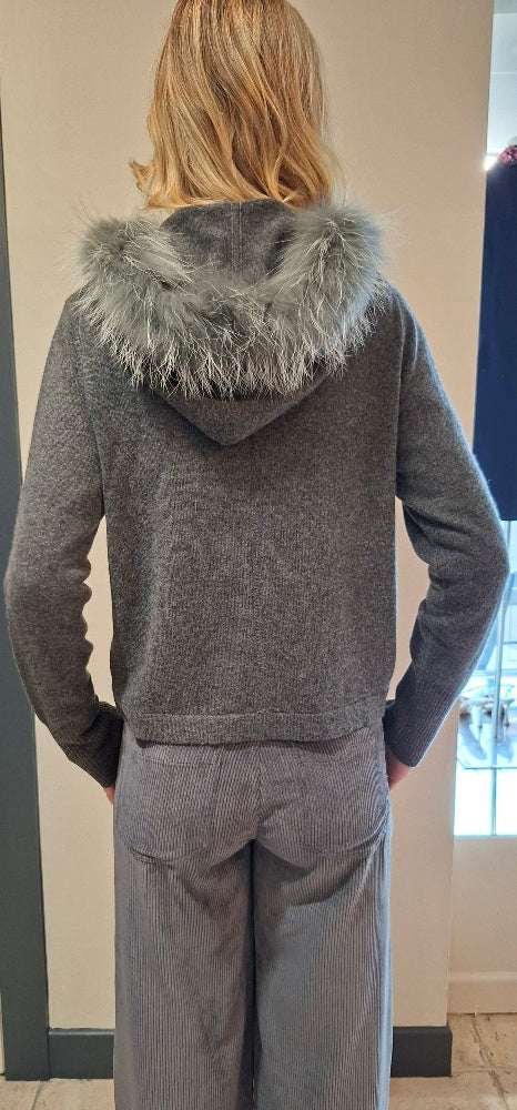 This luxurious hoody from Dom Goor is crafted from 100% merino wool, offering both comfort and style. The design features a relaxed fit with a fur-trimmed hood and a zip-up front, providing a cozy yet refined silhouette. Its minimalist design makes it versatile for various occasions, whether layered over casual wear or paired with more formal attire.