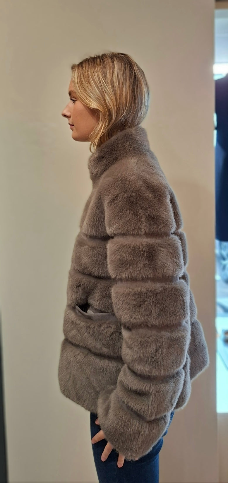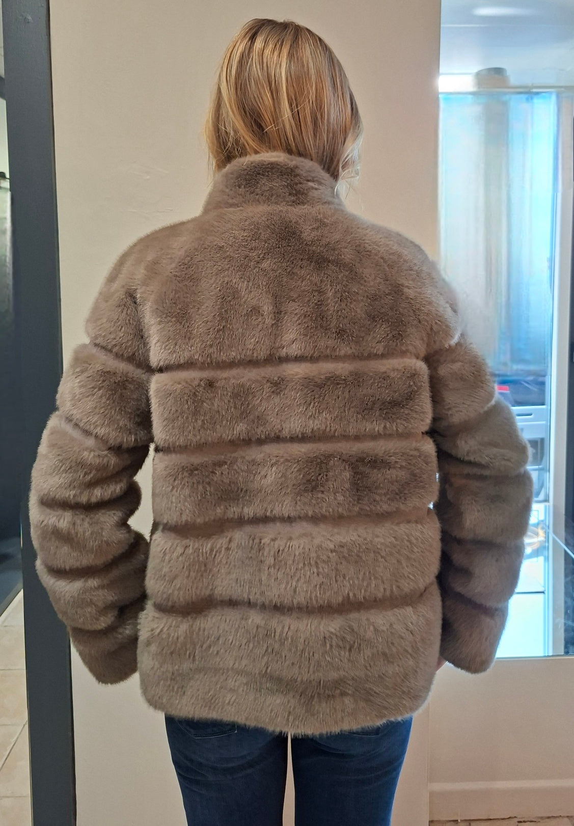 Faux fur jacket that combines luxury and warmth, crafted from high-quality materials. Available in Navy and Mink