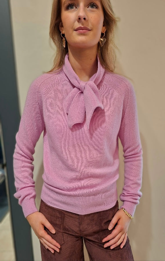 Elevate your wardrobe with this 100% cashmere knit, featuring a feminine self-tie bow at the neckline and a semi-fitted silhouette. Soft, luxurious, and versatile, it pairs effortlessly with tailored trousers or denim for both casual and refined looks.