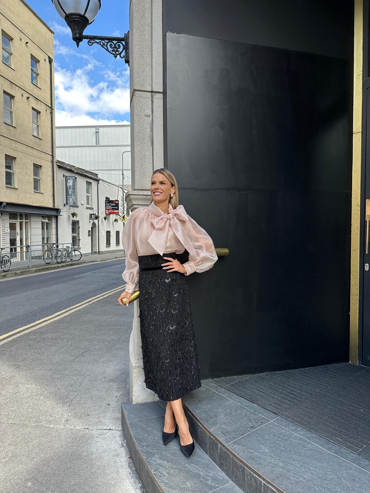 The Fabiola skirt epitomizes refined elegance with its high-waisted silhouette and intricate beadwork paired with textured detailing. This midi-length piece strikes the perfect balance between statement-making and versatile, offering a sophisticated option for occasions demanding understated luxury. The careful craftsmanship of the beading and texture creates visual depth, while the flattering high waist elongates the frame. Perfect for those who appreciate timeless design with contemporary flair.