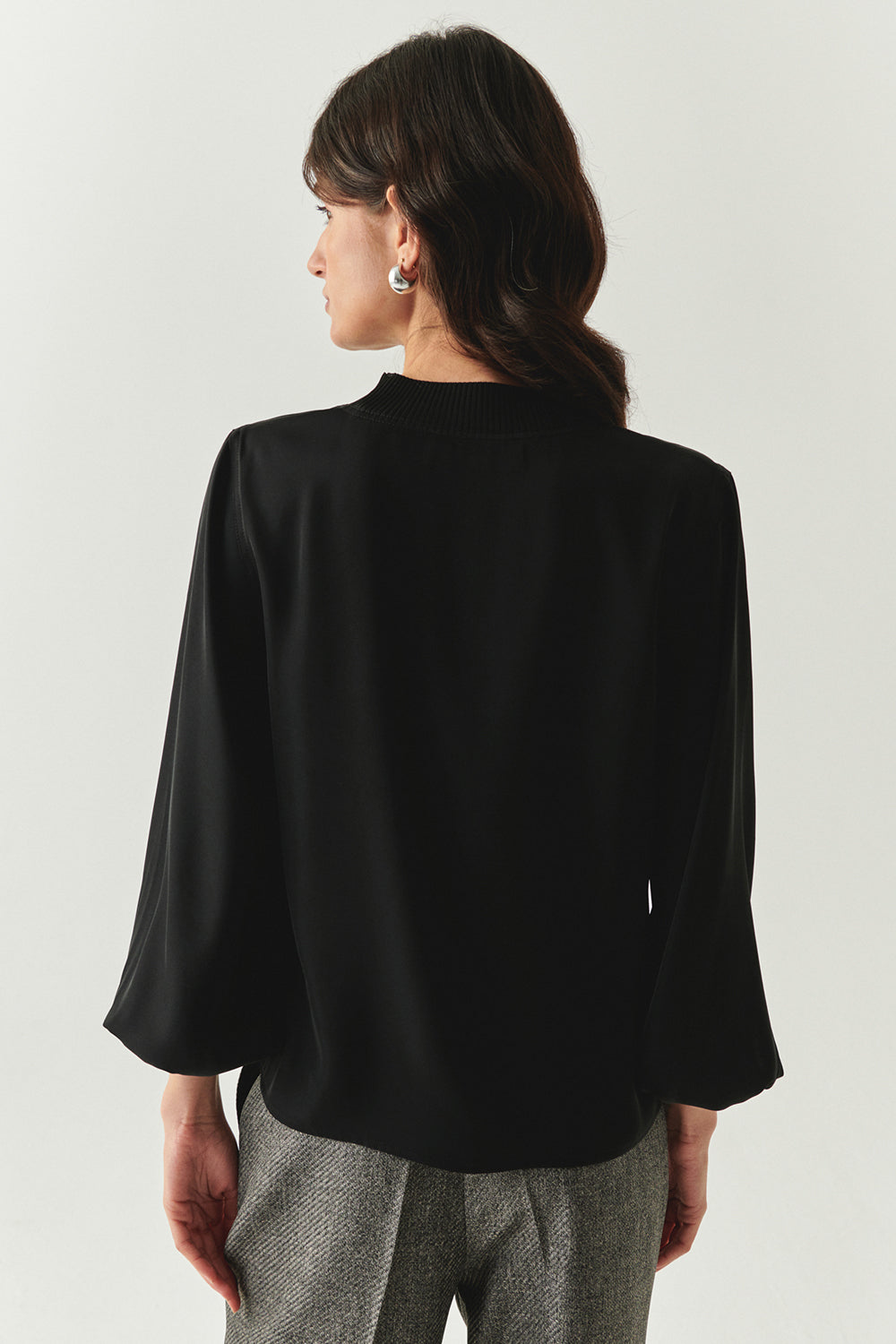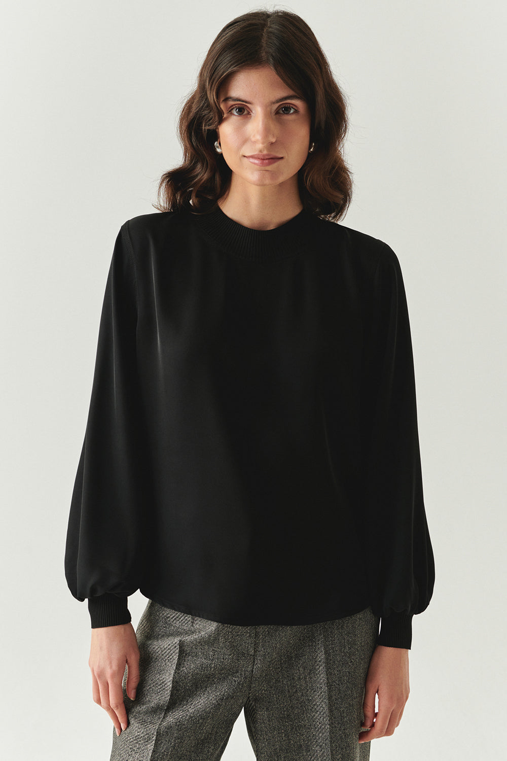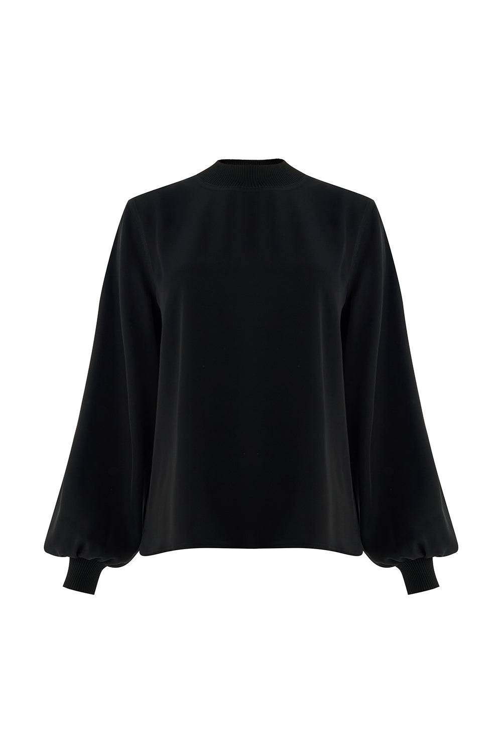Joelle Black Long Sleeve High Neck Blouse from Exquise this top has a relaxed fit.