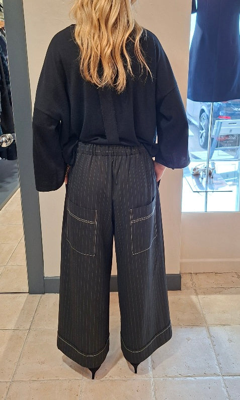 These Isik Ozgur stripe trousers combine comfort and style with a playful twist. Featuring a wide leg and a stretchy waistband, they offer freedom of movement all day long. Big patch pockets on the back add a fun, casual vibe while keeping essentials within easy reach. Finished with a neat cuff at the hem, these trousers bring a charming striped pattern to your wardrobe perfect for casual outings or relaxed weekends.