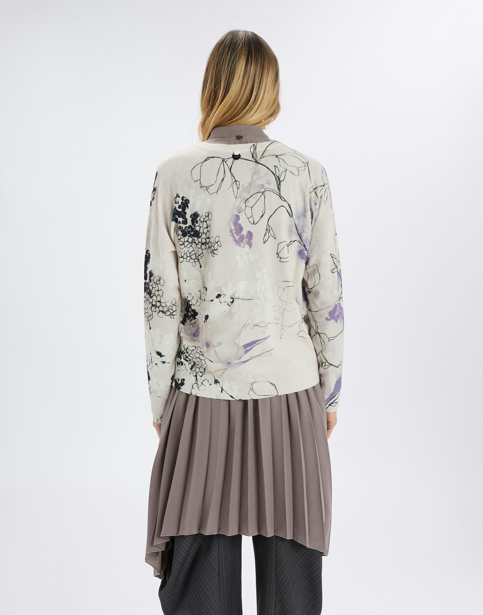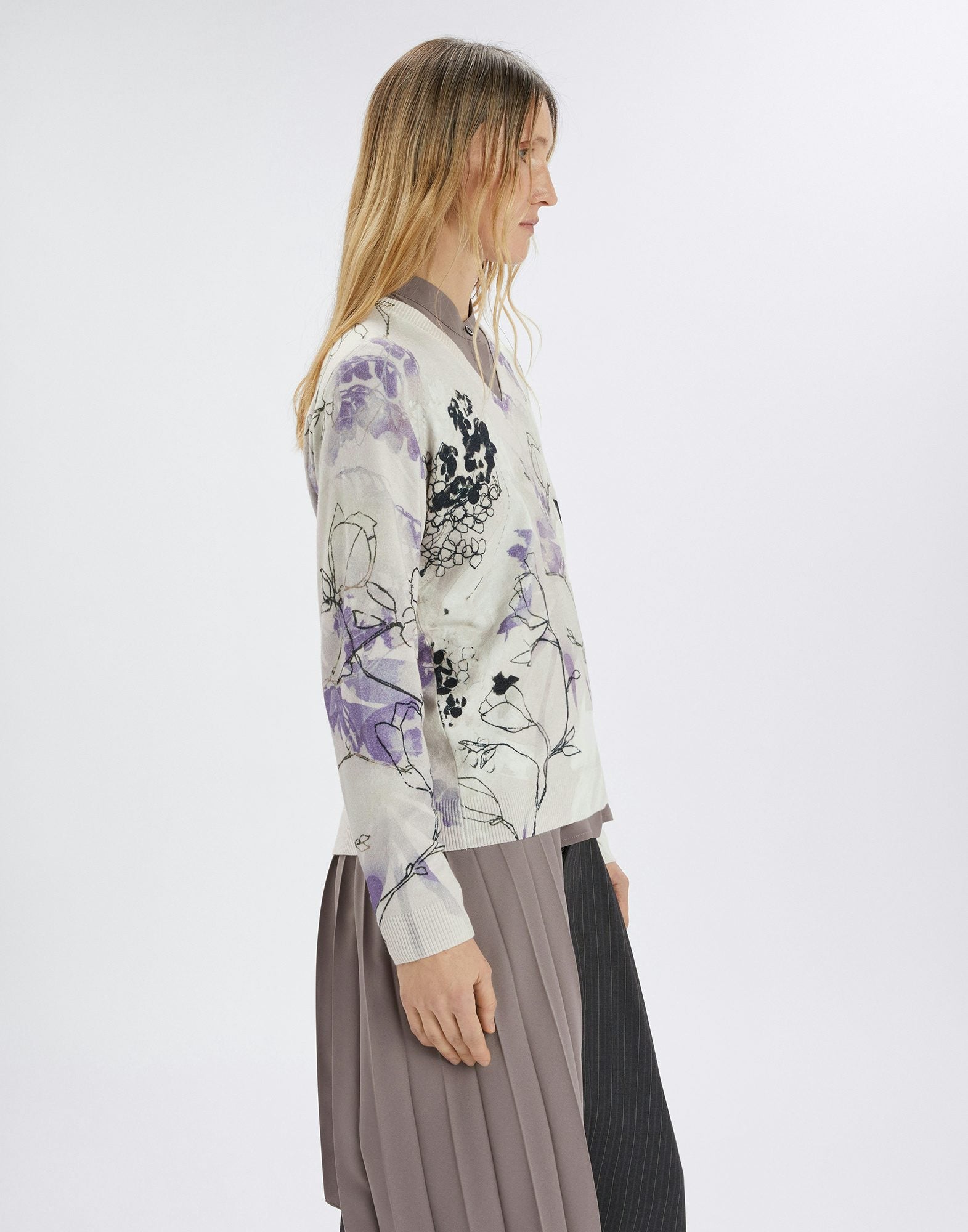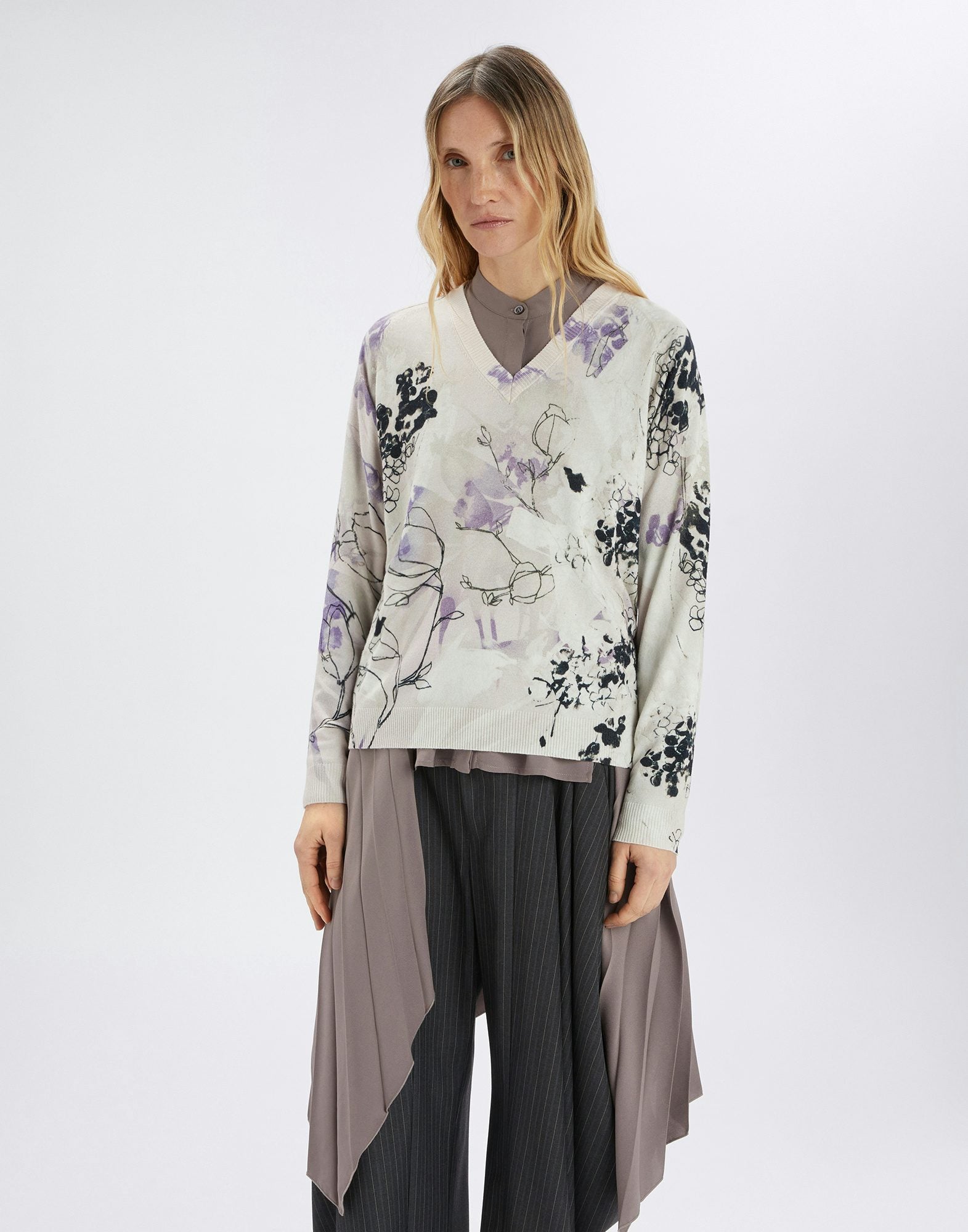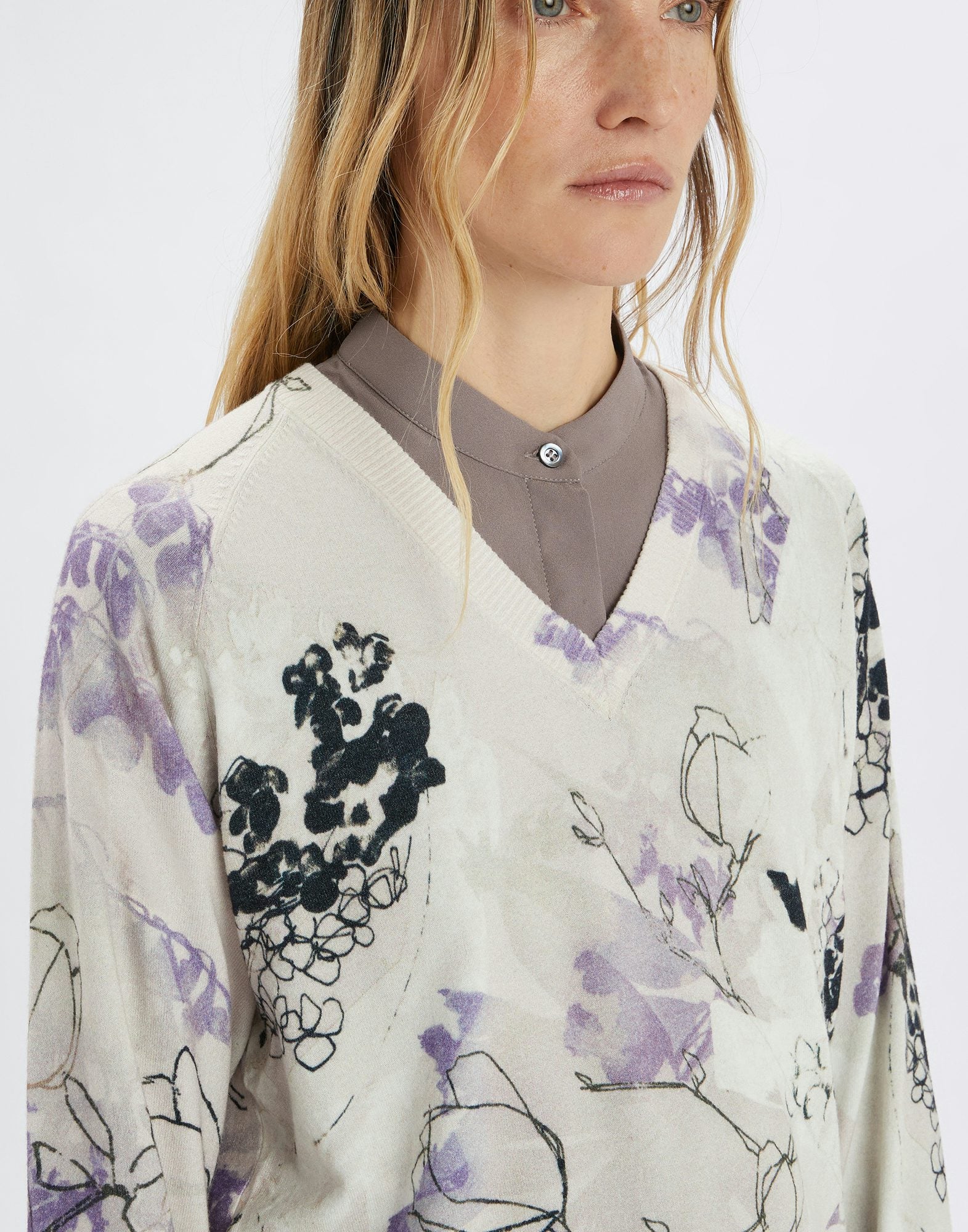 HIGH Amuse floral v neck knit. black/white floral and lilac floral
