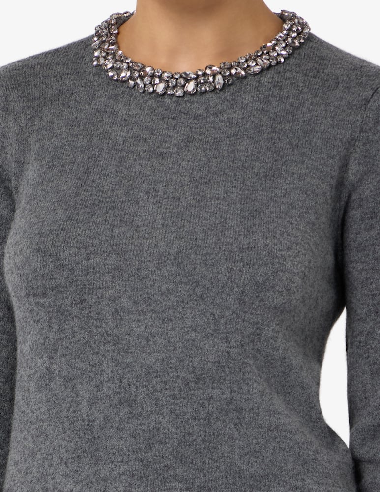Luciana Alpaca Jewel Sweater features embellishments around the neckline.