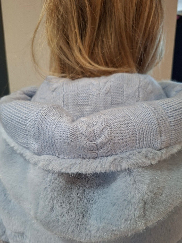 Details: Premium faux-fur, satin lining, relaxed fit, ethically crafted.