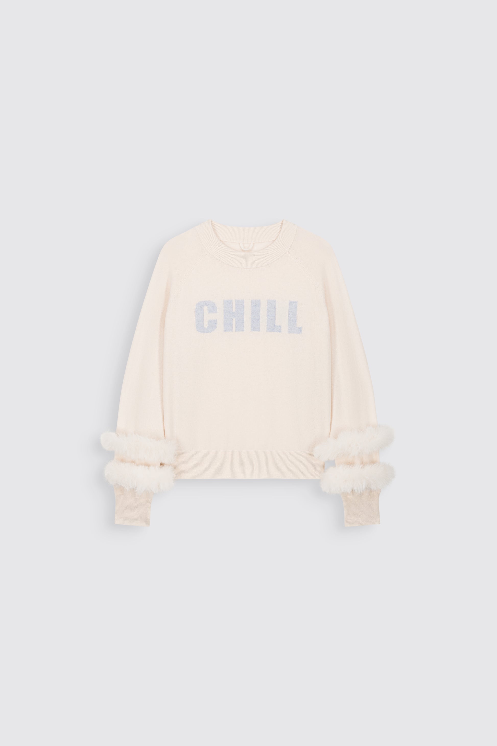 Max&Moi Promise "CHILL" motif knit with faux fur cuffs