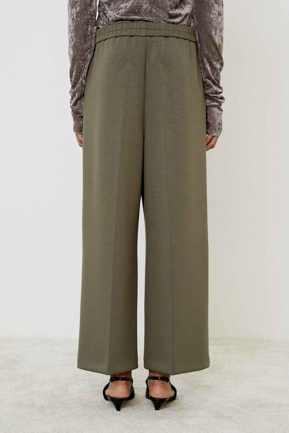 High waisted wide leg trouser featuring a cropped leg. With a wide stretchy waistband for comfort. Matching jacket available