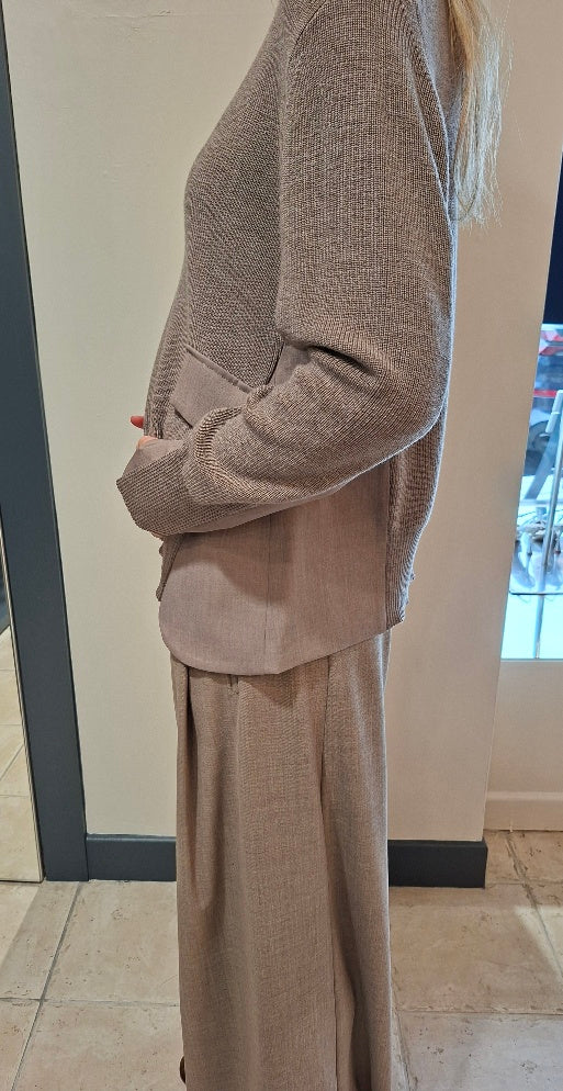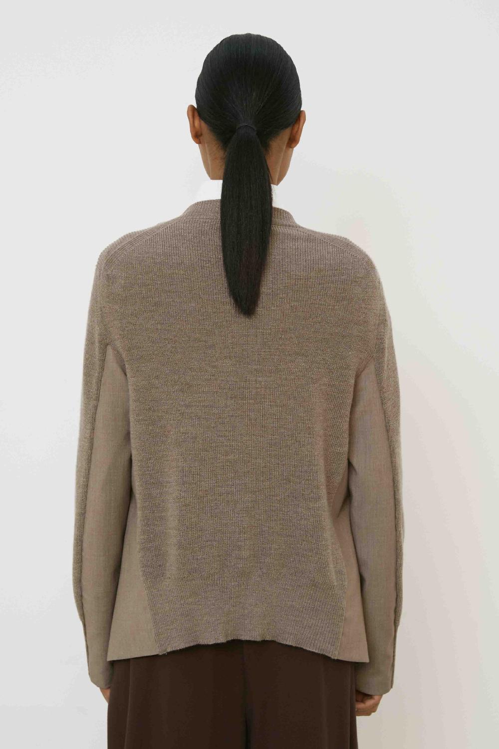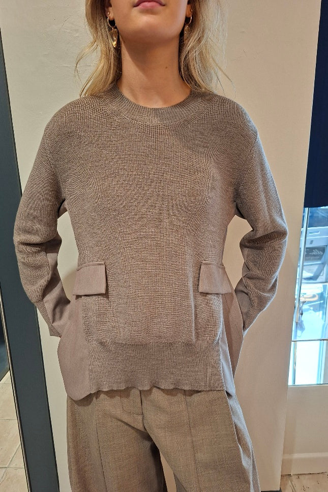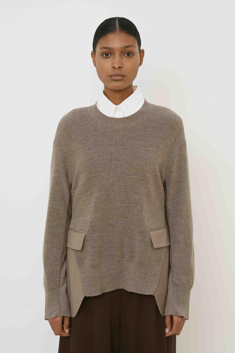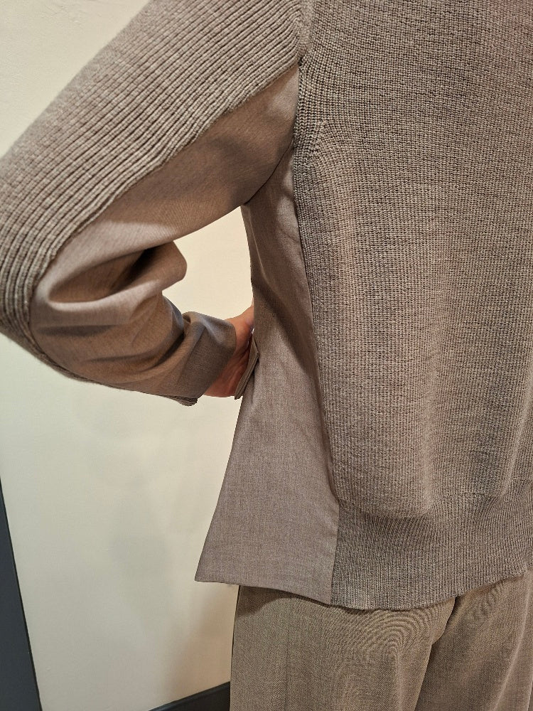 The MeiMeij sweater blends soft knitwear with tailored panels for a modern, layered look. Made from 100% virgin wool with a touch of elastane for comfort, it combines cozy warmth with structured detail. Versatile and elegant, it pairs beautifully with trousers or skirts for both casual and refined outfits.