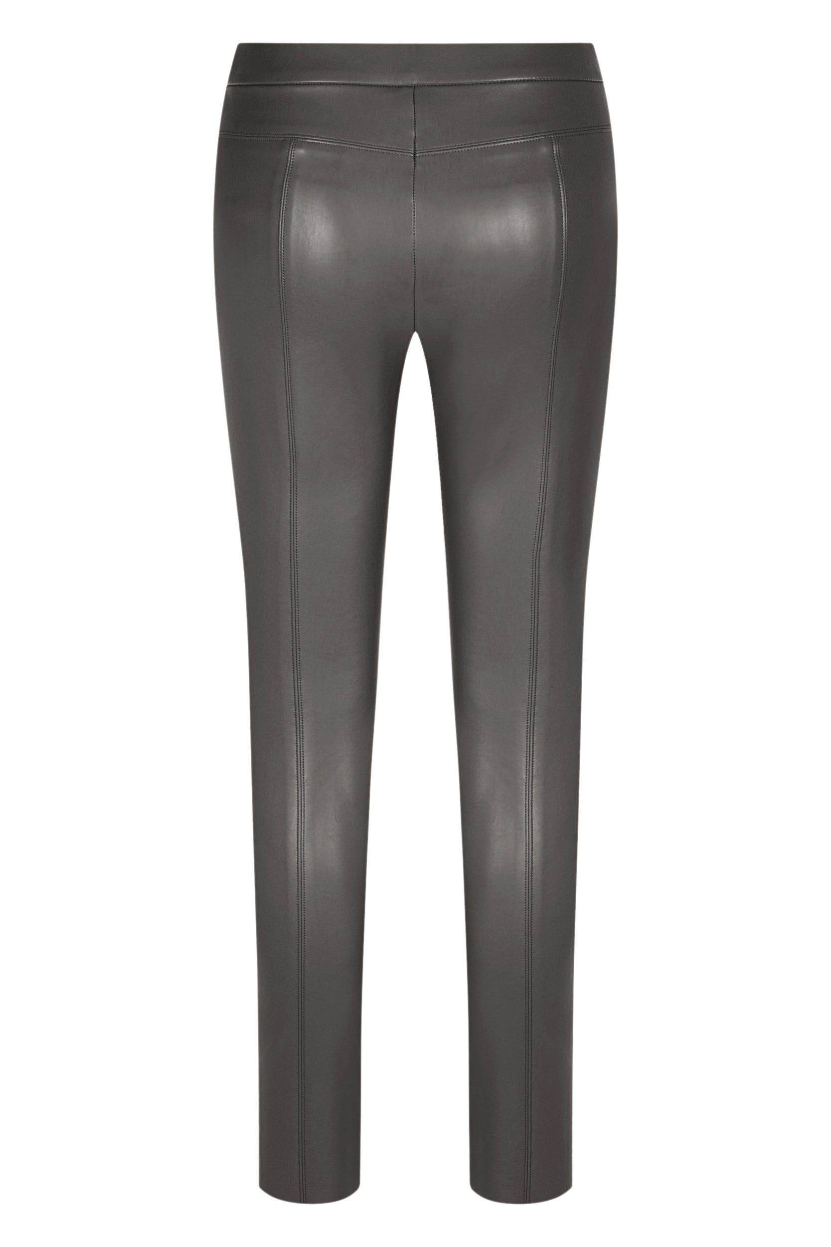 The Raffaello Rossi Resa skinny faux leather leggings are a stylish and sustainable wardrobe staple, known for their sleek design and high-quality materials. These leggings are crafted from bi-elastic faux leather with a refined nappa leather look, offering both comfort and durability. The interior is soft, providing a comfortable fit, while the exterior boasts a smooth, polished finish. Designed with longitudinal seams along the back, they create the illusion of longer legs, enhancing the overall silhouette.