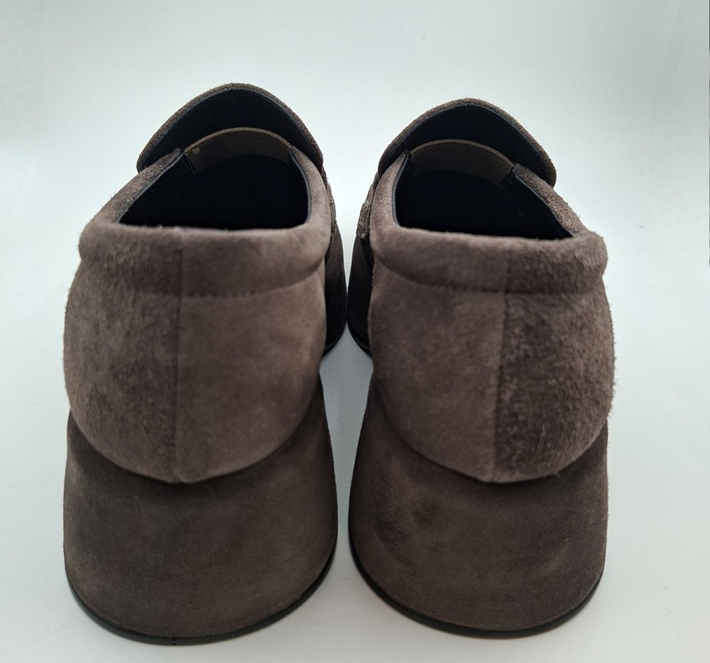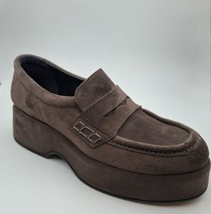 The “Fliper 10612” is a platform moccasin style in suede , fully lined with smooth leather.