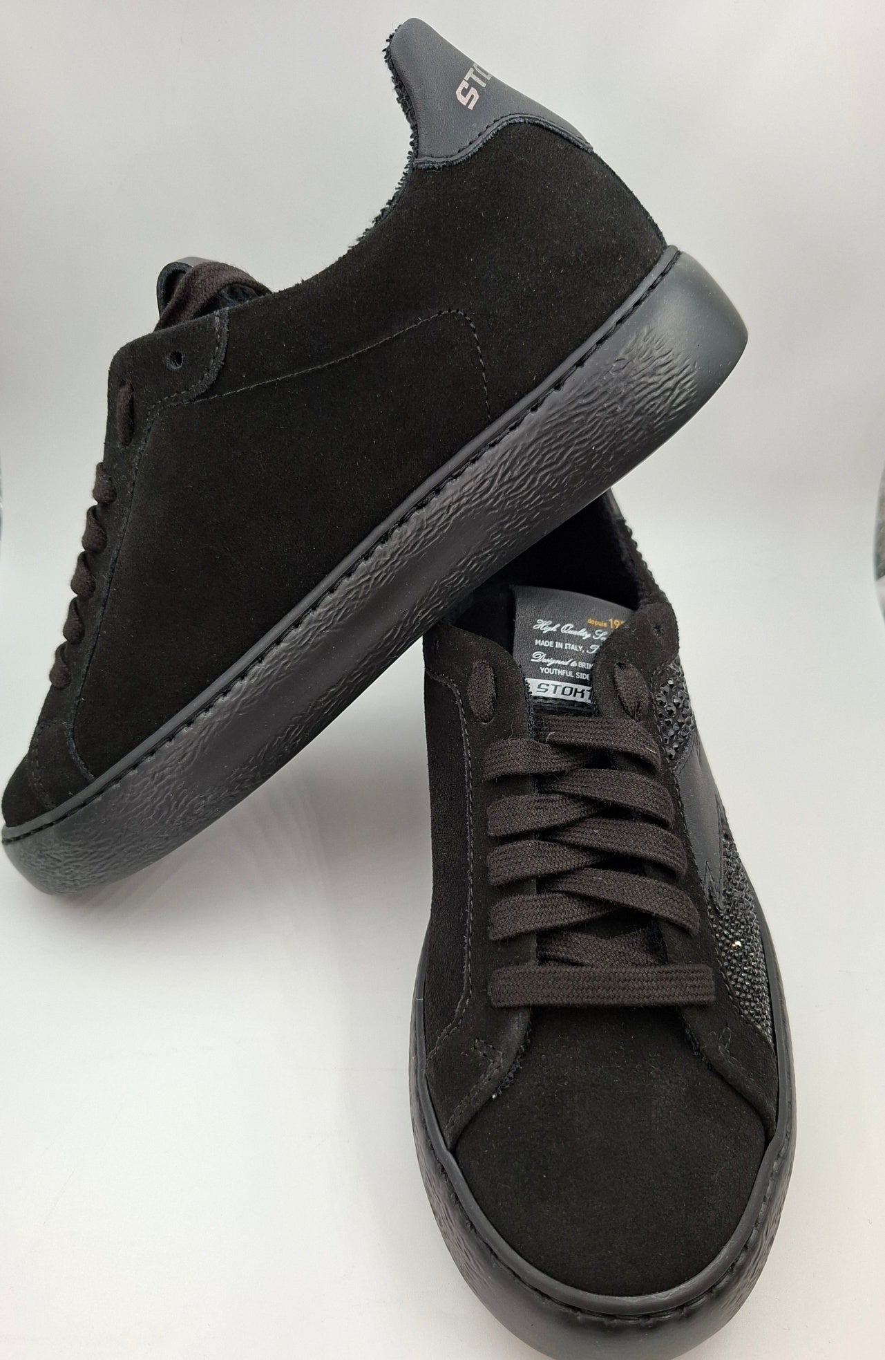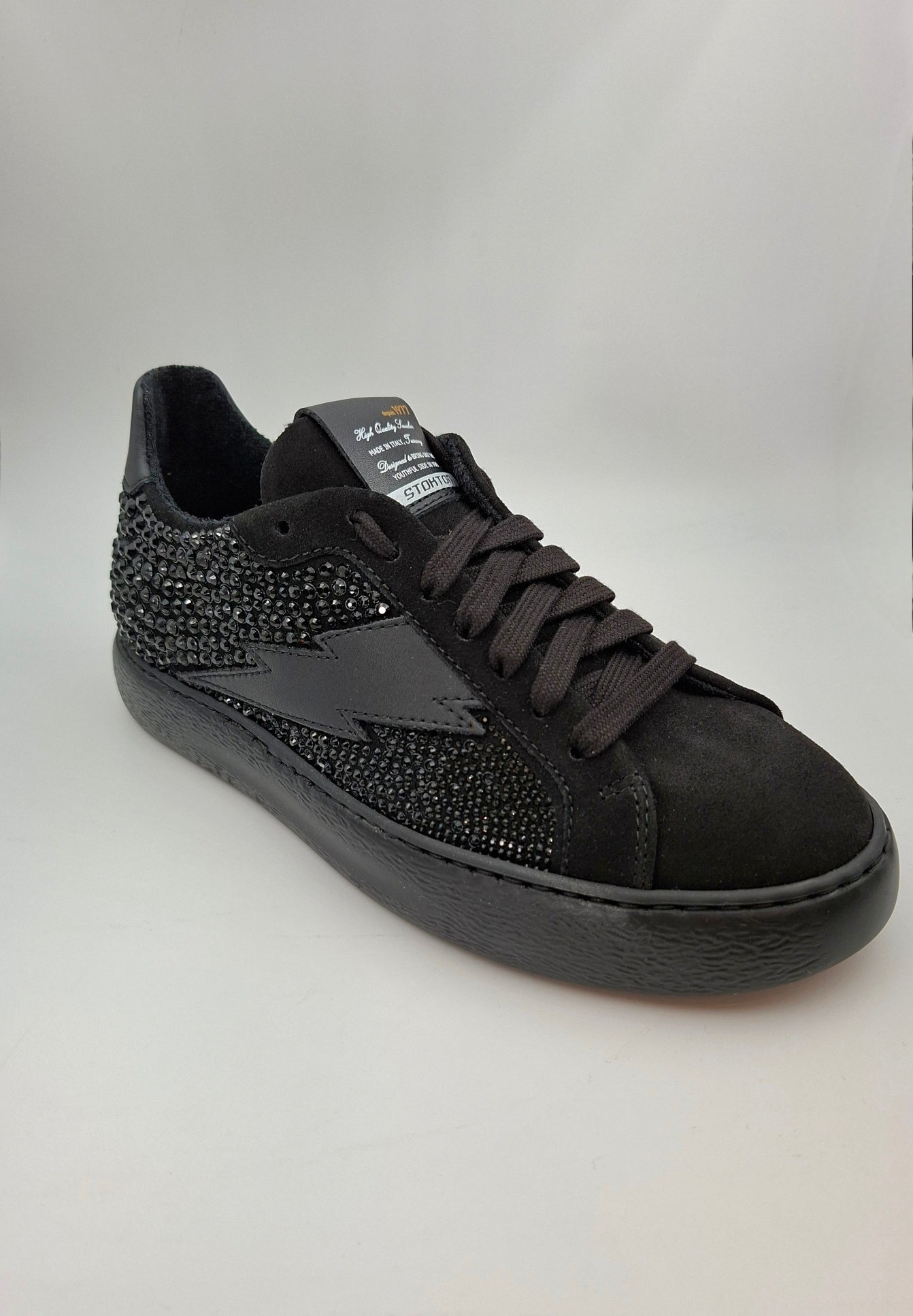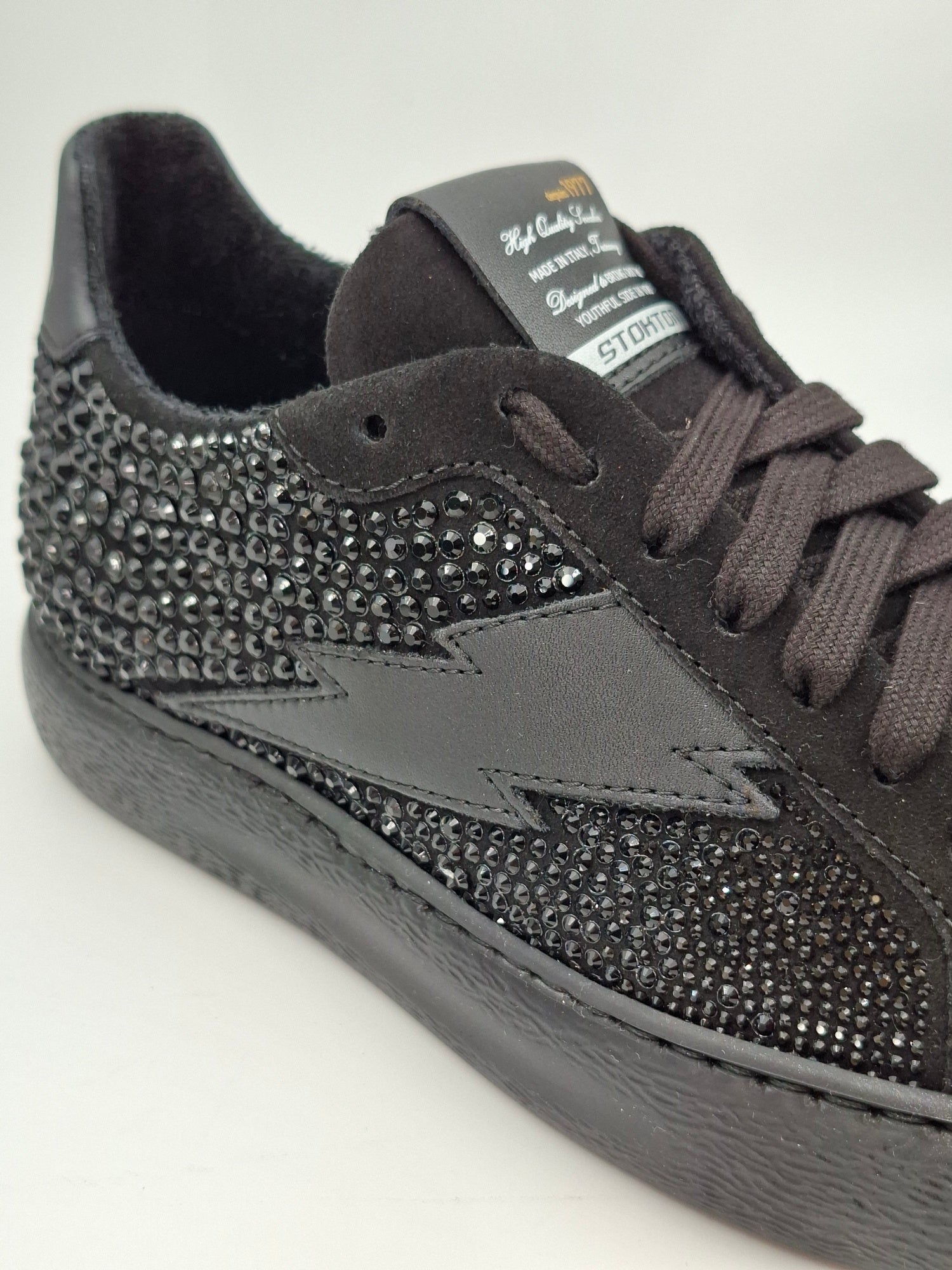 This sneaker features luxurious jet (black crystal) beading embellishments on the suede upper.