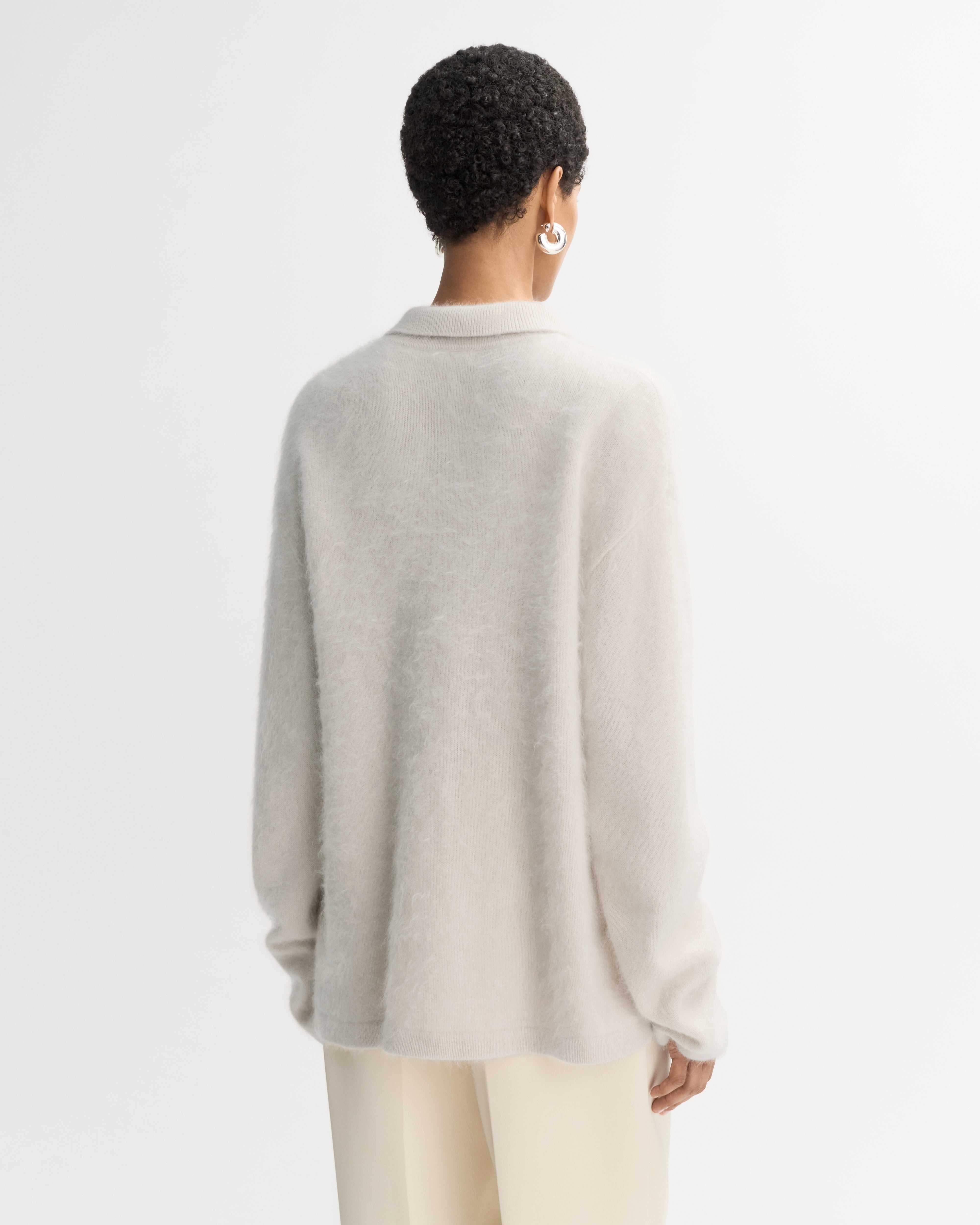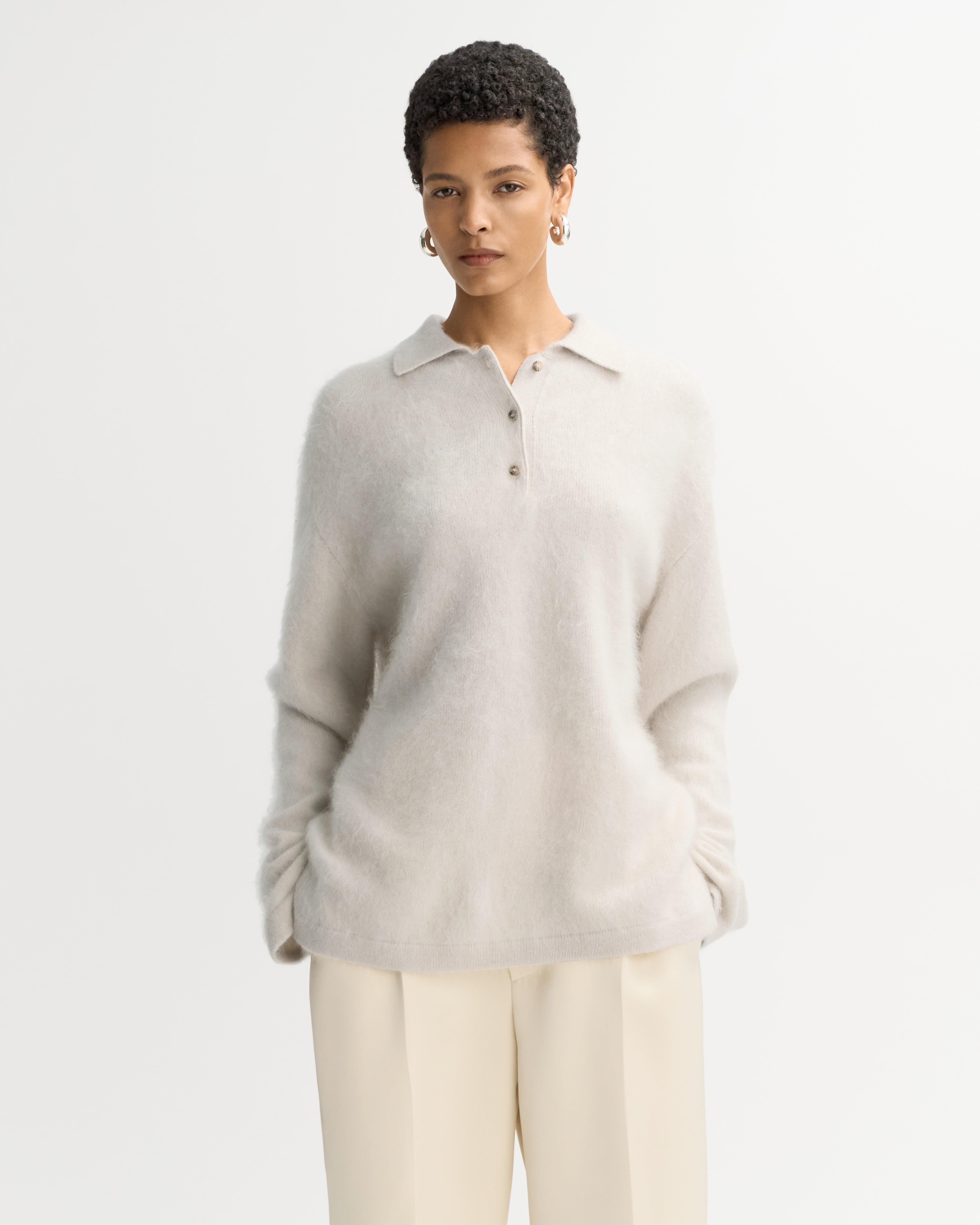 A chic cashmere pullover with a classic button front framed by a polo collar. Crafted from super-soft brushed cashmere for a smooth, comfortable feel — excellent if you're aiming for both style and softness.