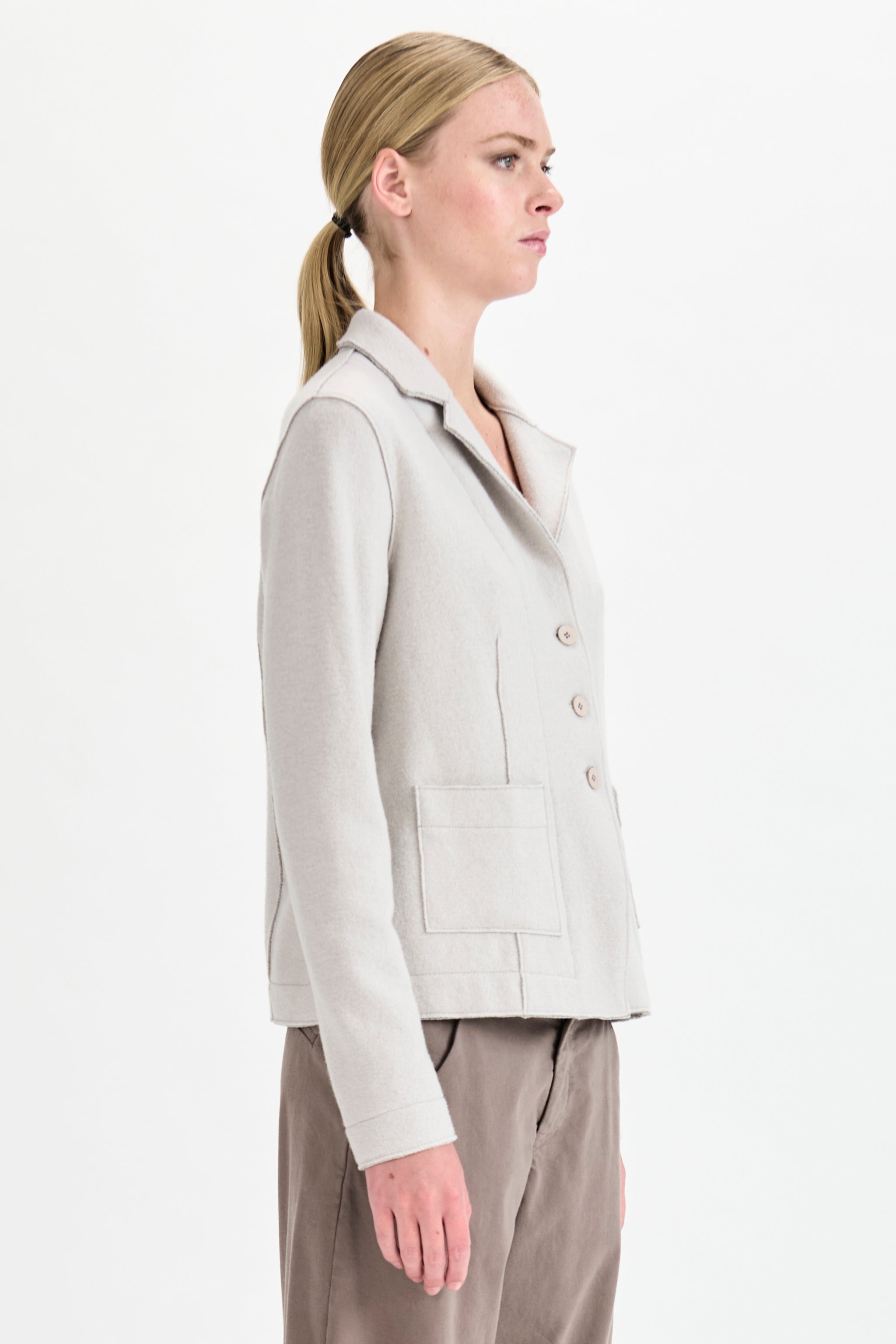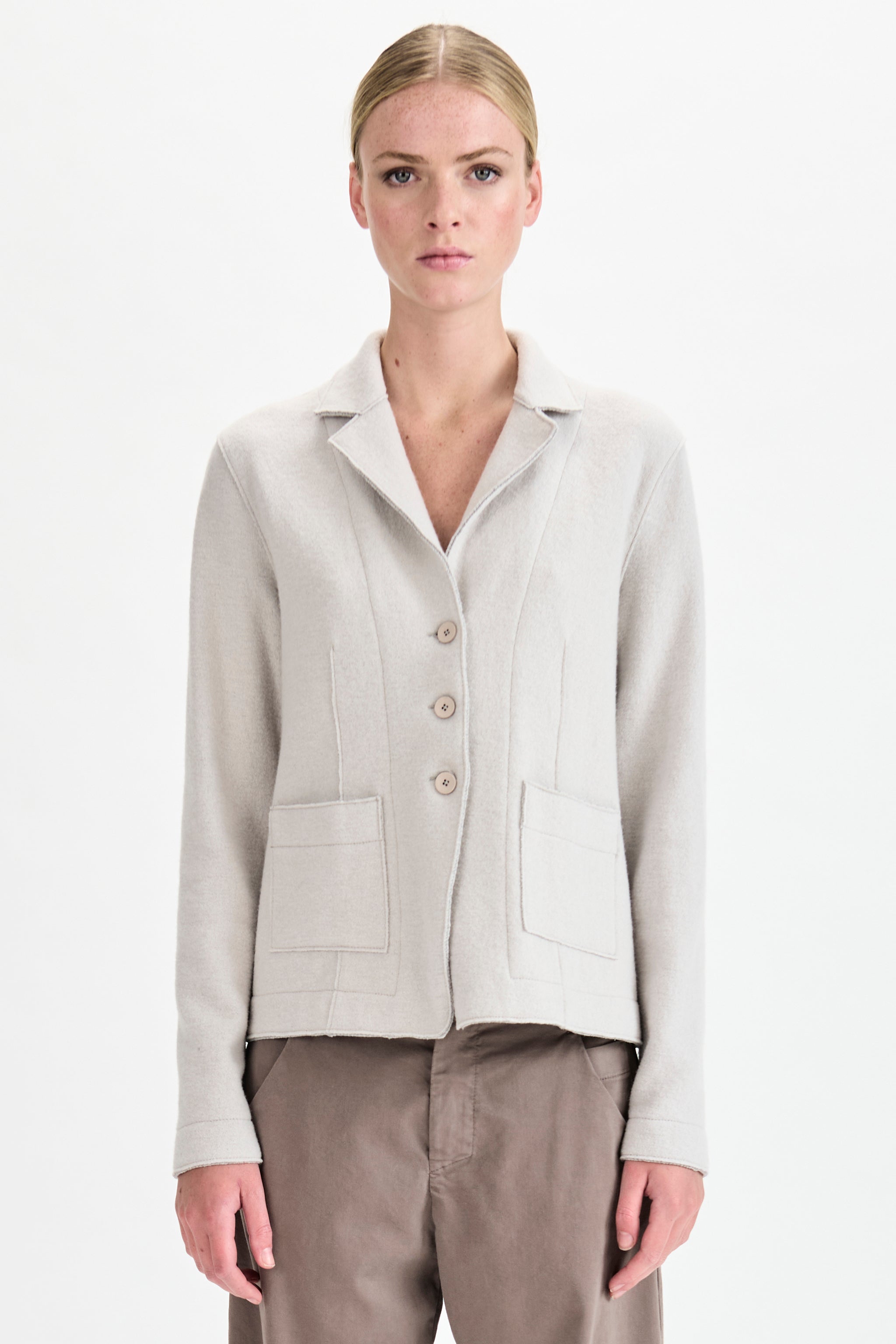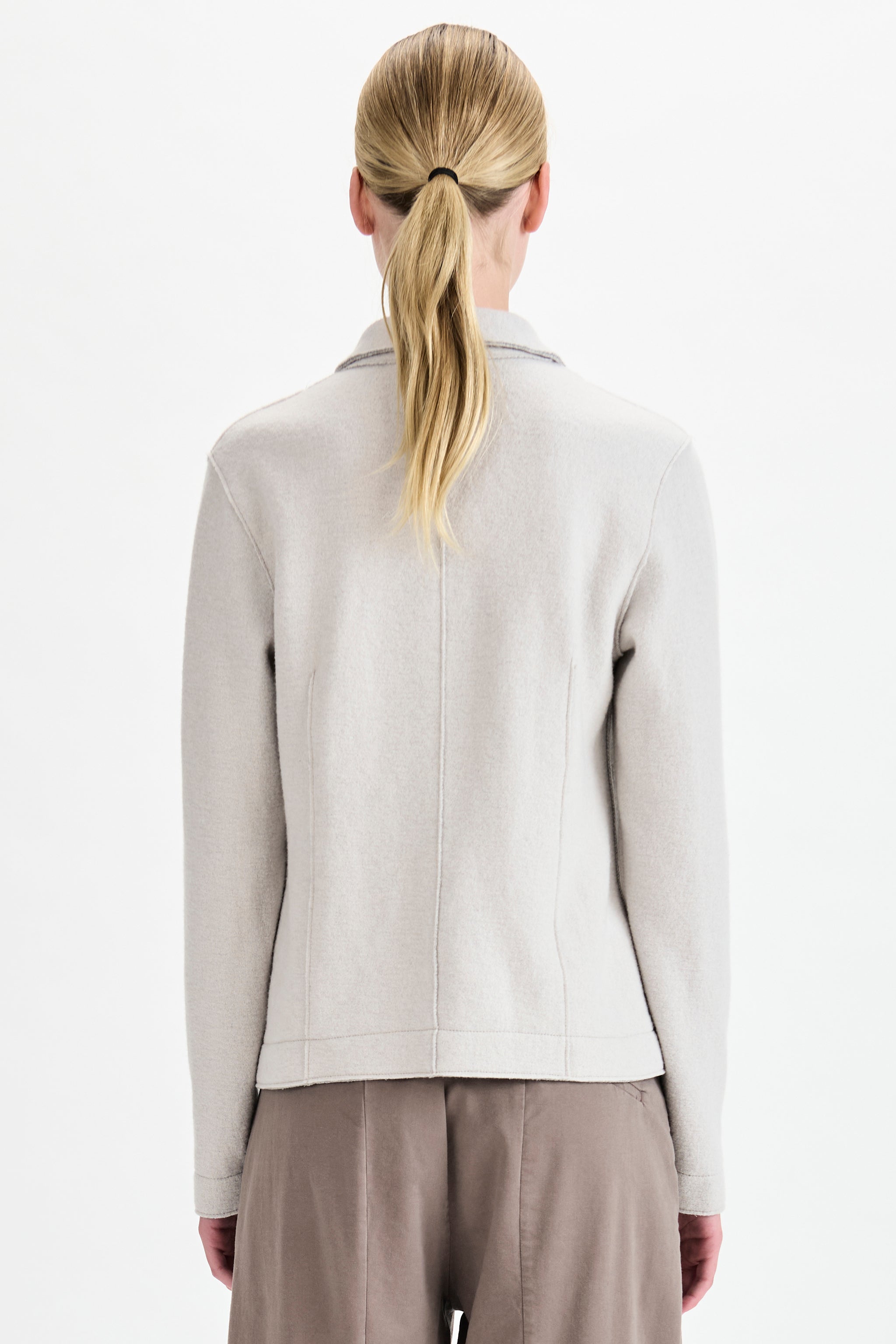 Shaped Knitted Jacket in wool and viscose, with a herringbone pattern on the inside. Chalk / Light Grey with herringbone pattern inside.