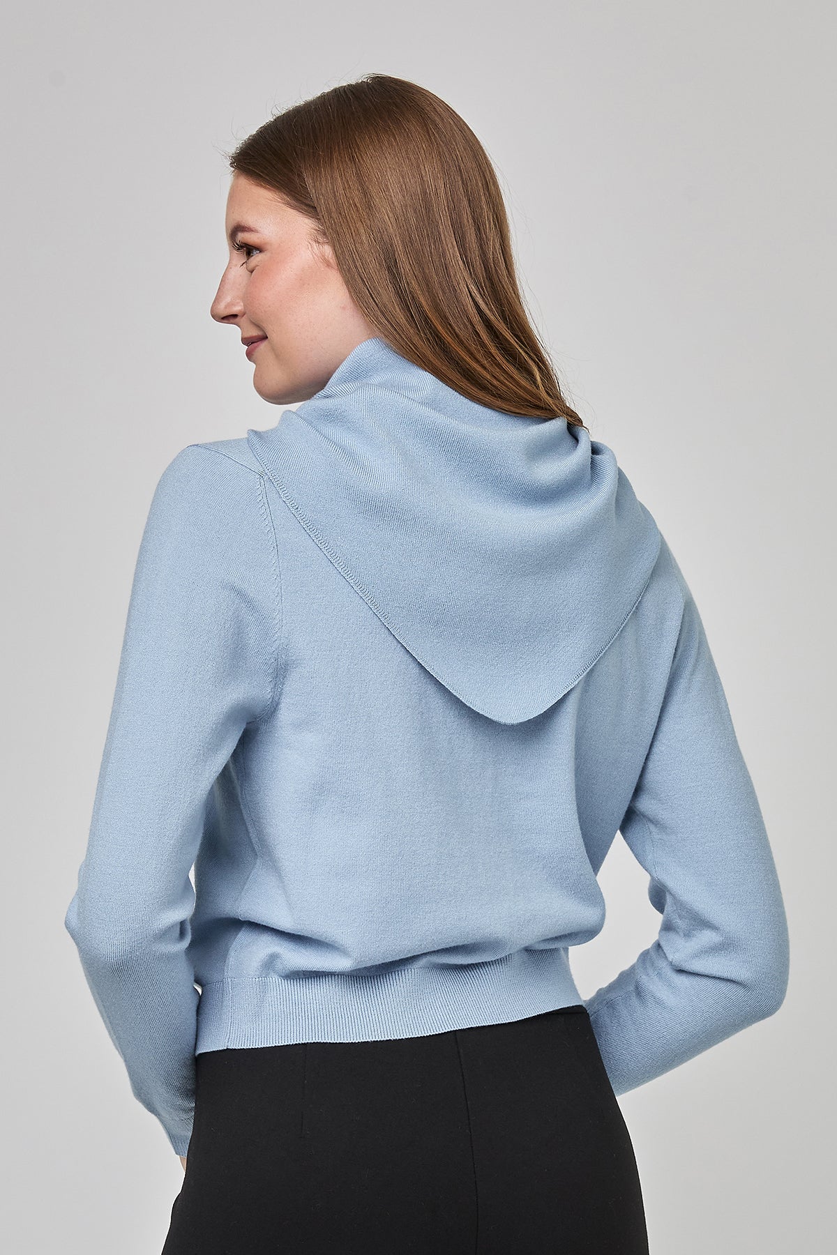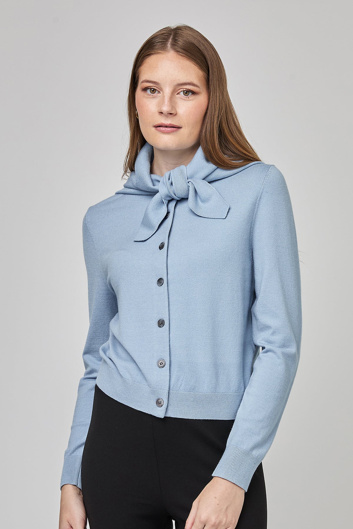 A chic, streamlined knit with a built-in scarf detail for that signature tie-neck look.