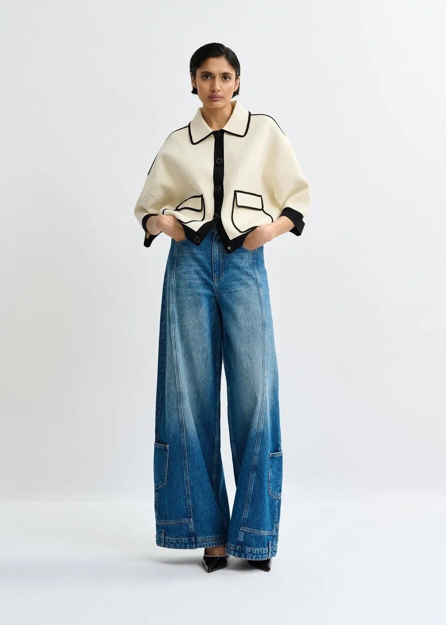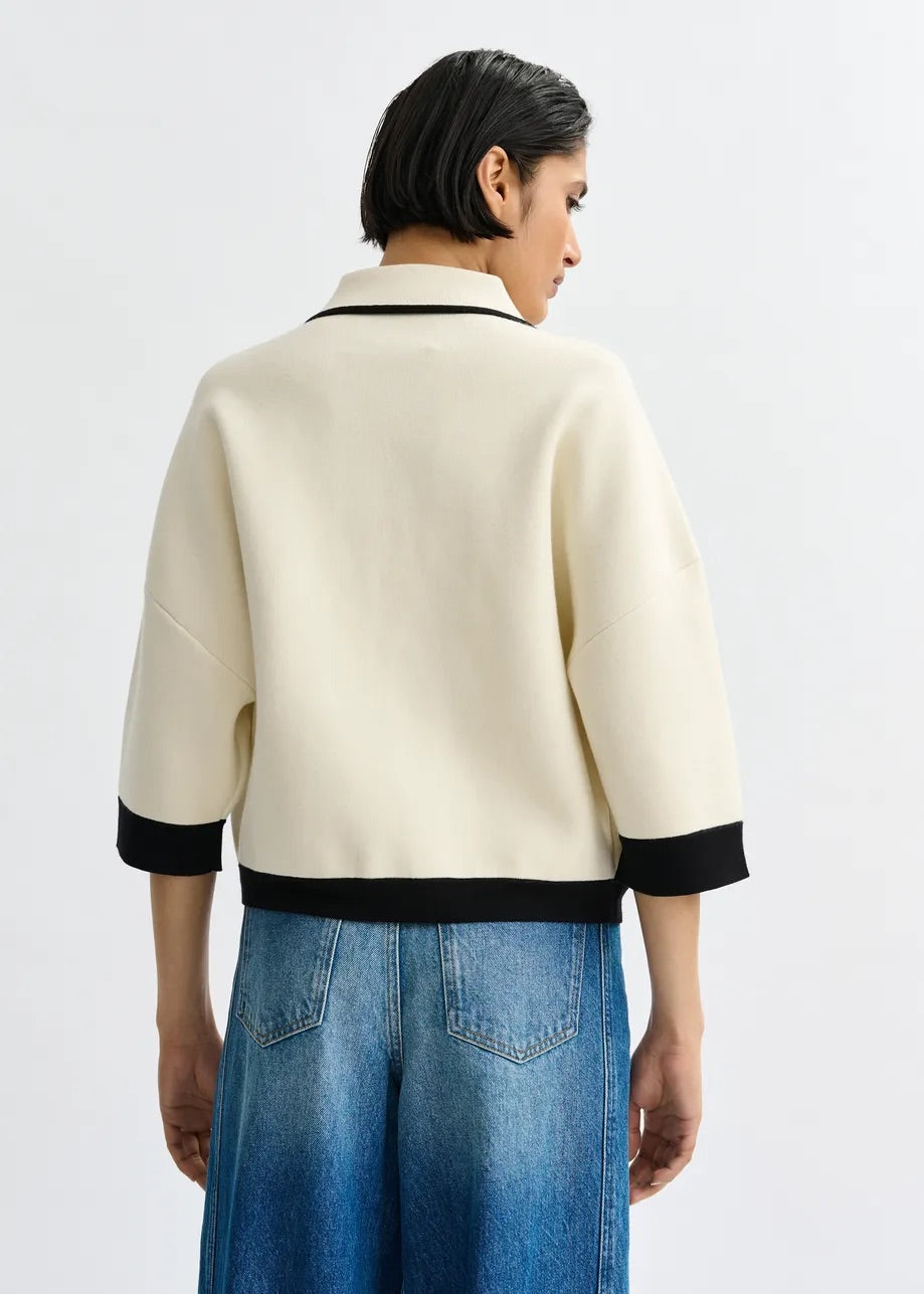 Essentiel Antwerp Jugly Knitted Cardi in cream with black trim