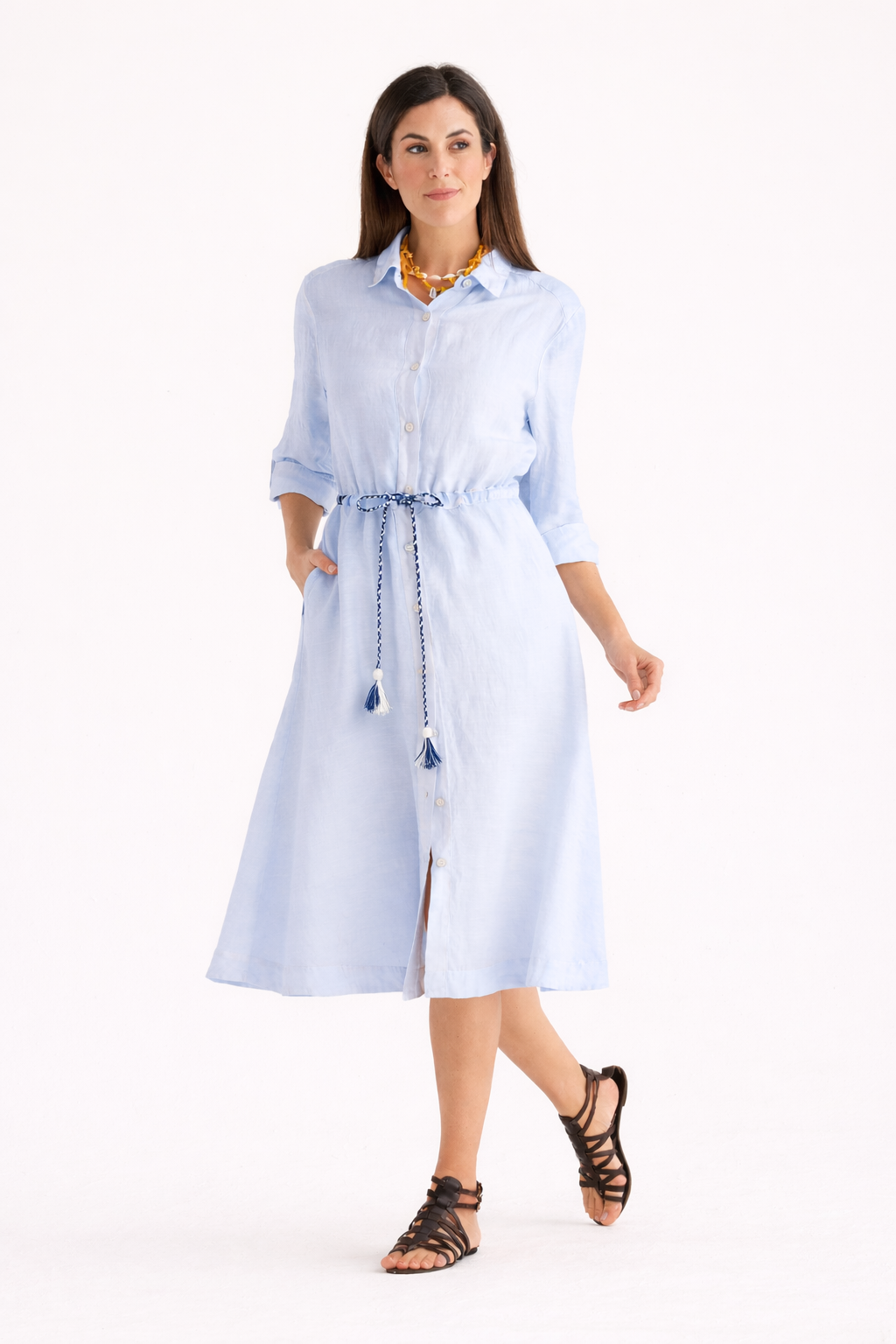 120 Lino W4PLB Midi shirt Dress with drawstring waist