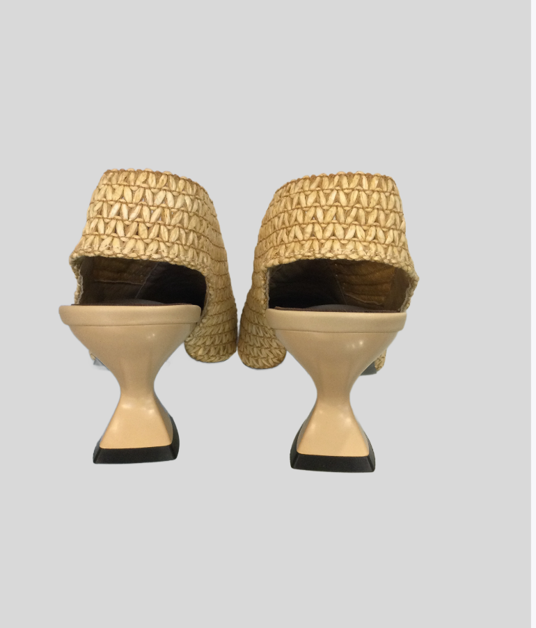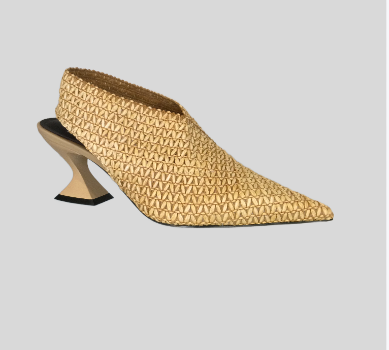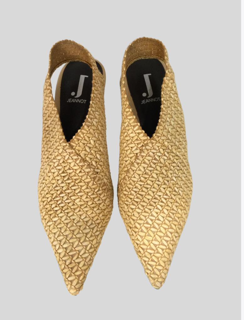 Jeannot AJ651C Slingback pointed toe stretch hessian and leather
