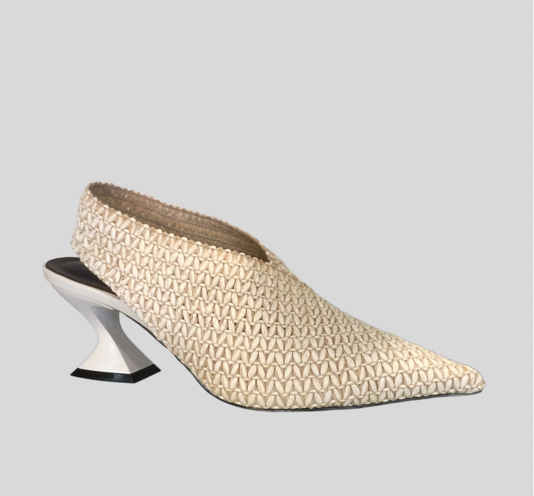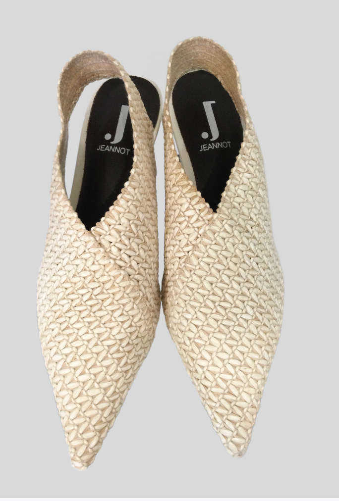 Jeannot AJ651B Slingback pointed toe stretch hessian and leather