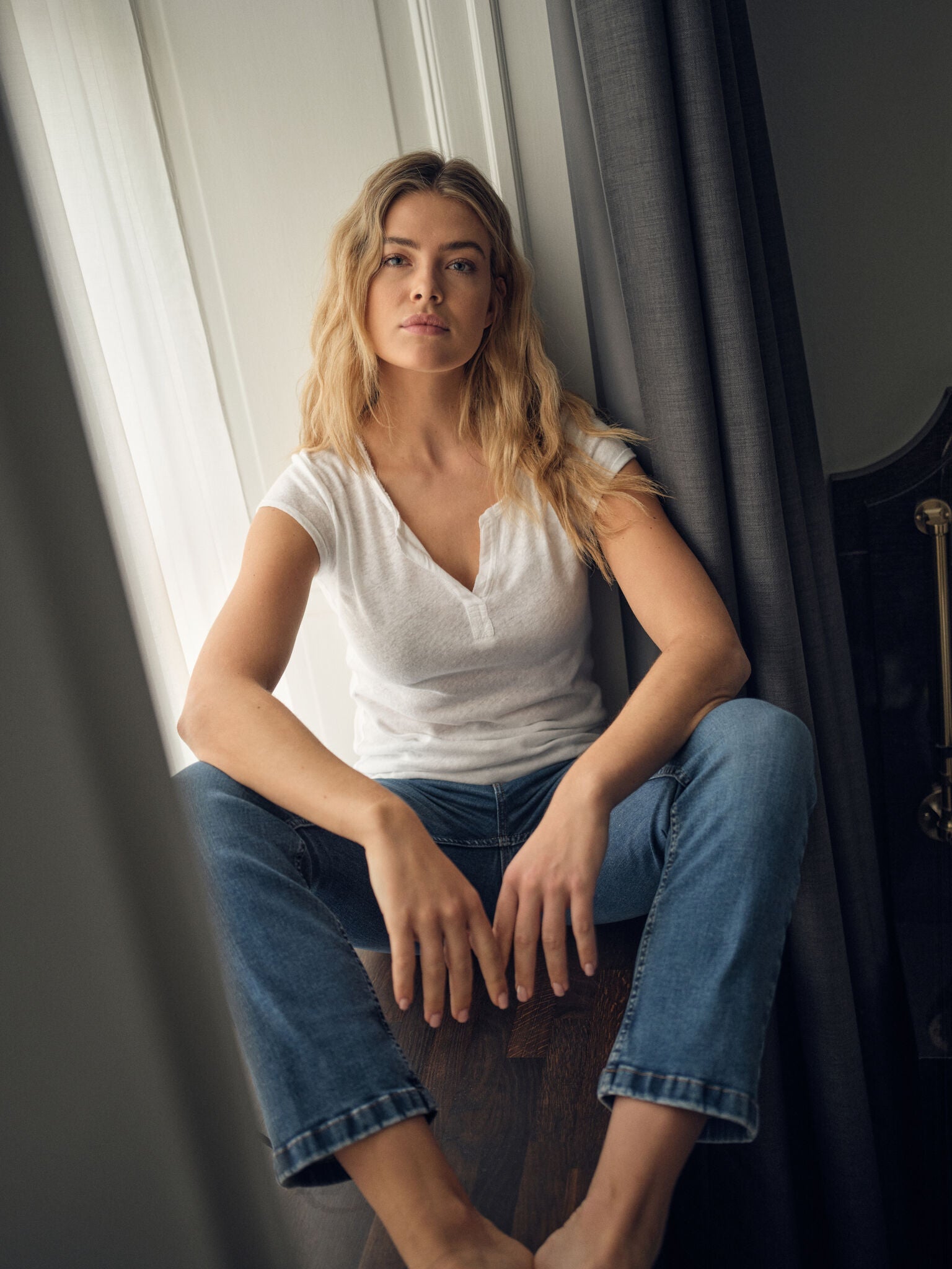 Mos Mosh Troy Tee in white cotton and line mix
