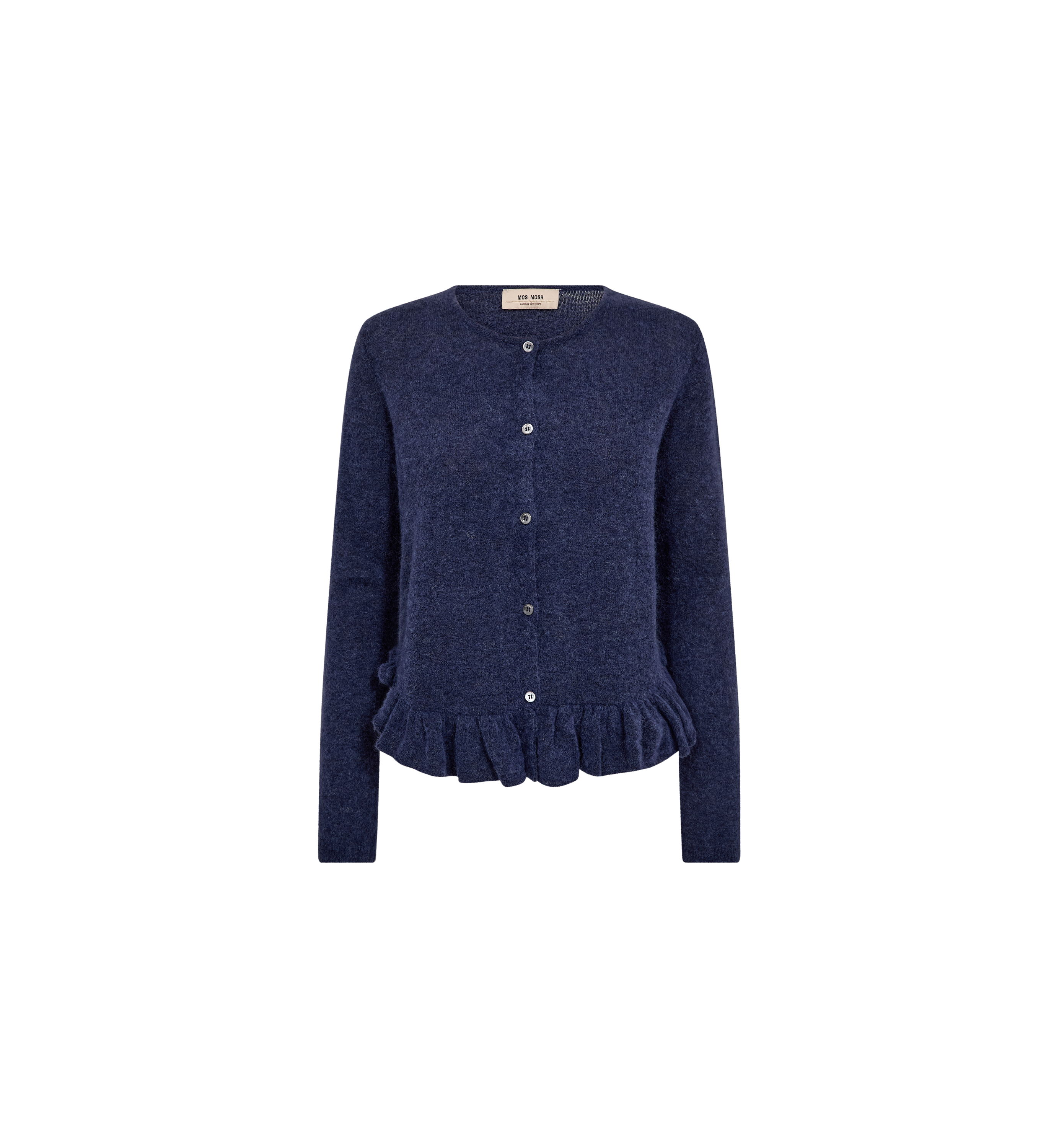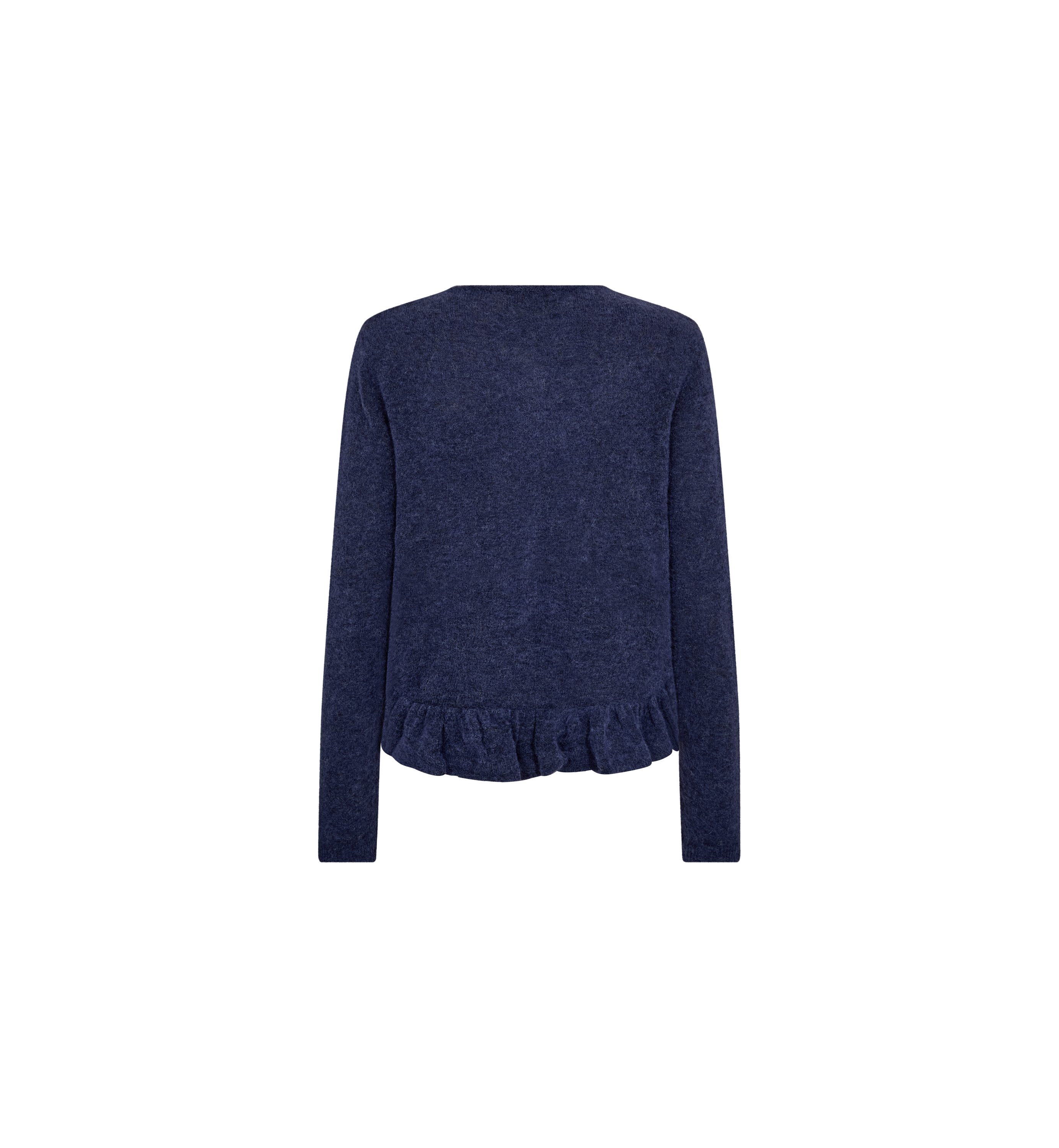 A soft wool-blend cardigan with long sleeves, button closure, and delicate frill detailing at the hem. The flattering fit and feminine design make it perfect for adding texture to everyday looks.