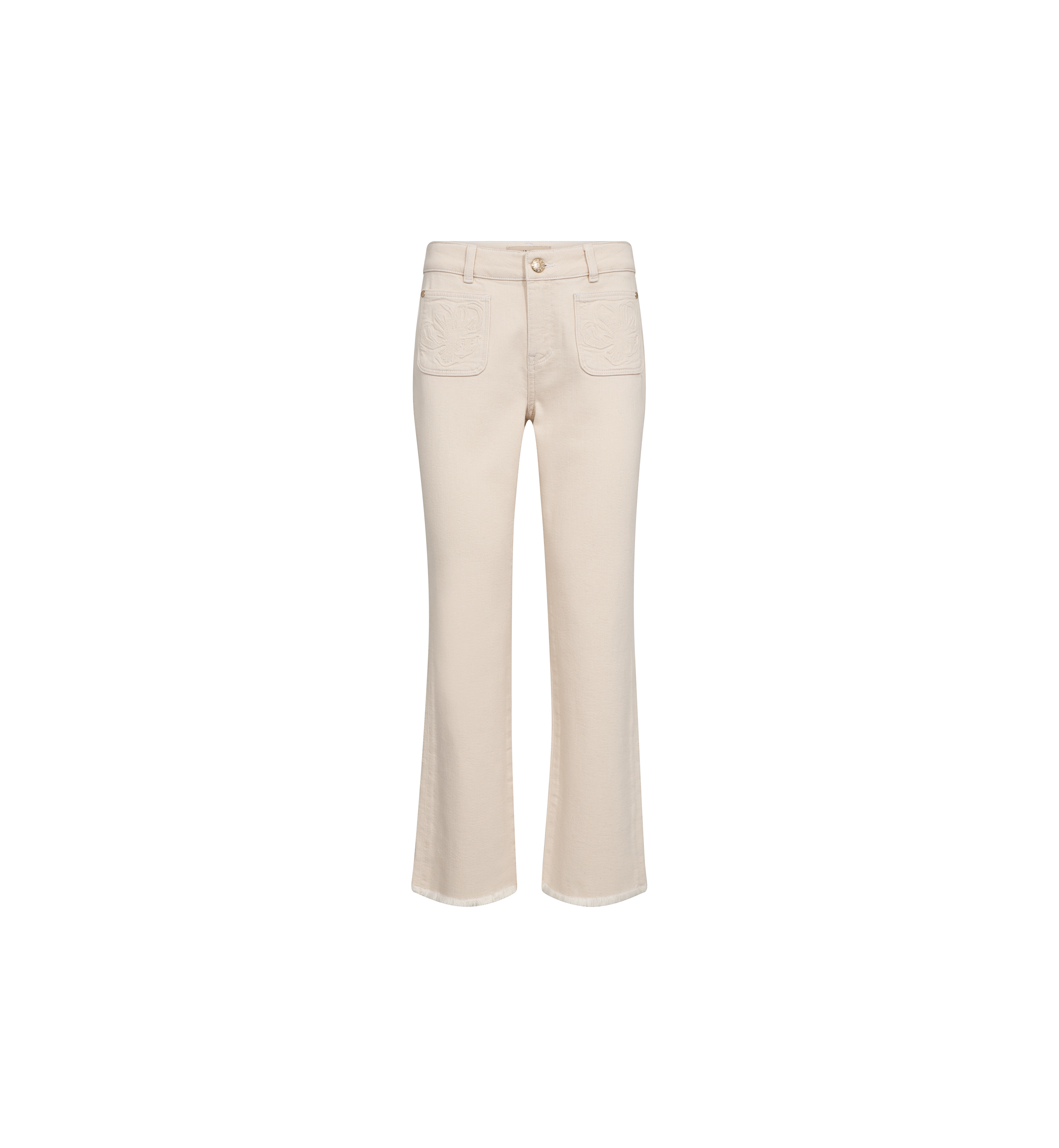 These mid-rise jeans combine a flattering flare fit with a soft, contemporary feel. Designed with front patch pockets and a cropped ankle length, they bring a subtle retro charm to modern dressing. Style them with a tucked-in blouse or a relaxed knit for a chic, effortless look.