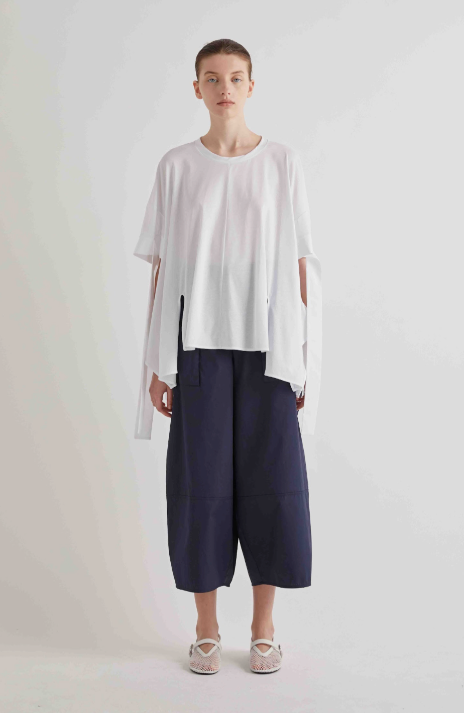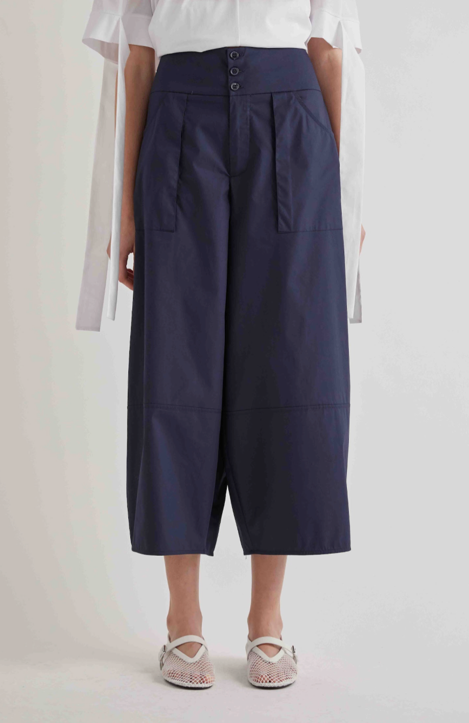 Meimeij M6PA20 Trousers epitomize refined tailoring with their sophisticated navy palette and meticulously crafted construction. These lightweight trousers feature elegant button detailing and practical front pockets, seamlessly blending contemporary design with timeless elegance. Perfect for elevating your everyday wardrobe with understated luxury and impeccable finish.