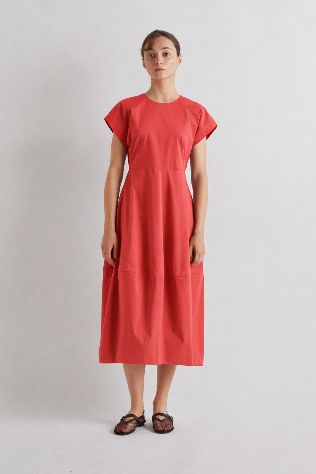 Meimeij M6EB12 cap sleeve midi dress in deep navy. Crafted from cotton with a flattering full skirt silhouette and elegant capped sleeves, this versatile piece transitions seamlessly from day to evening. The timeless navy hue pairs effortlessly with your existing wardrobe, making it an essential addition to any collection.