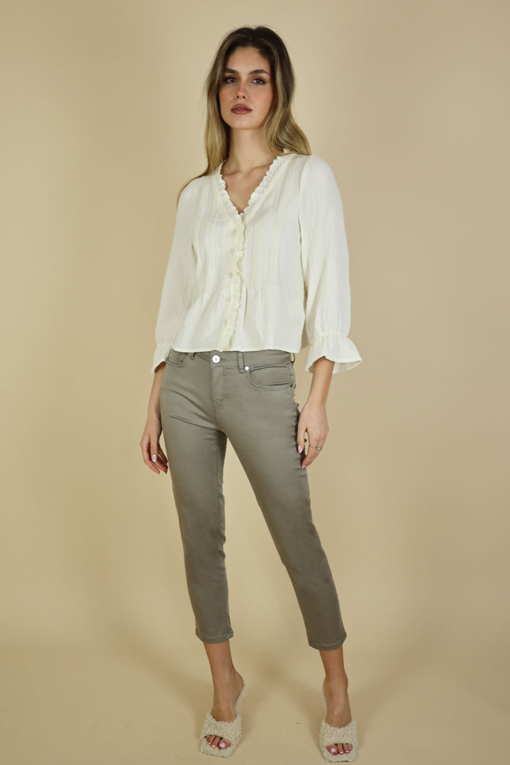 The No2moro Jonie Top combines effortless elegance with everyday comfort. Crafted from a light, soft fabric that feels gentle against your skin, this butter cream top features flattering 3/4 sleeves perfect for layering or wearing solo. Ideal for transitional seasons, it pairs beautifully with jeans, trousers, or skirts for a versatile wardrobe staple that works from day to evening.