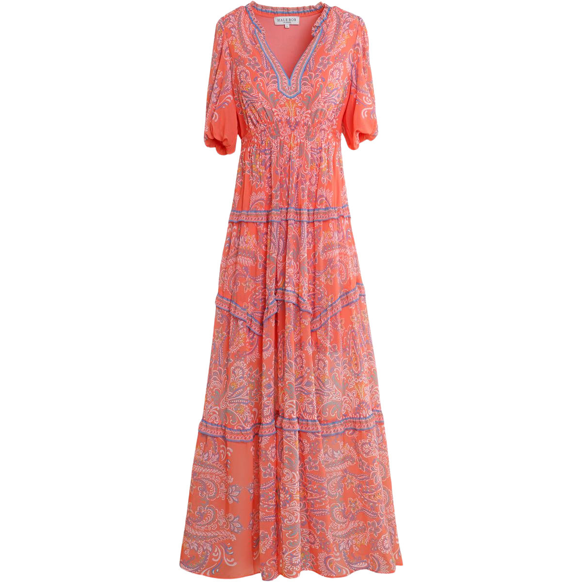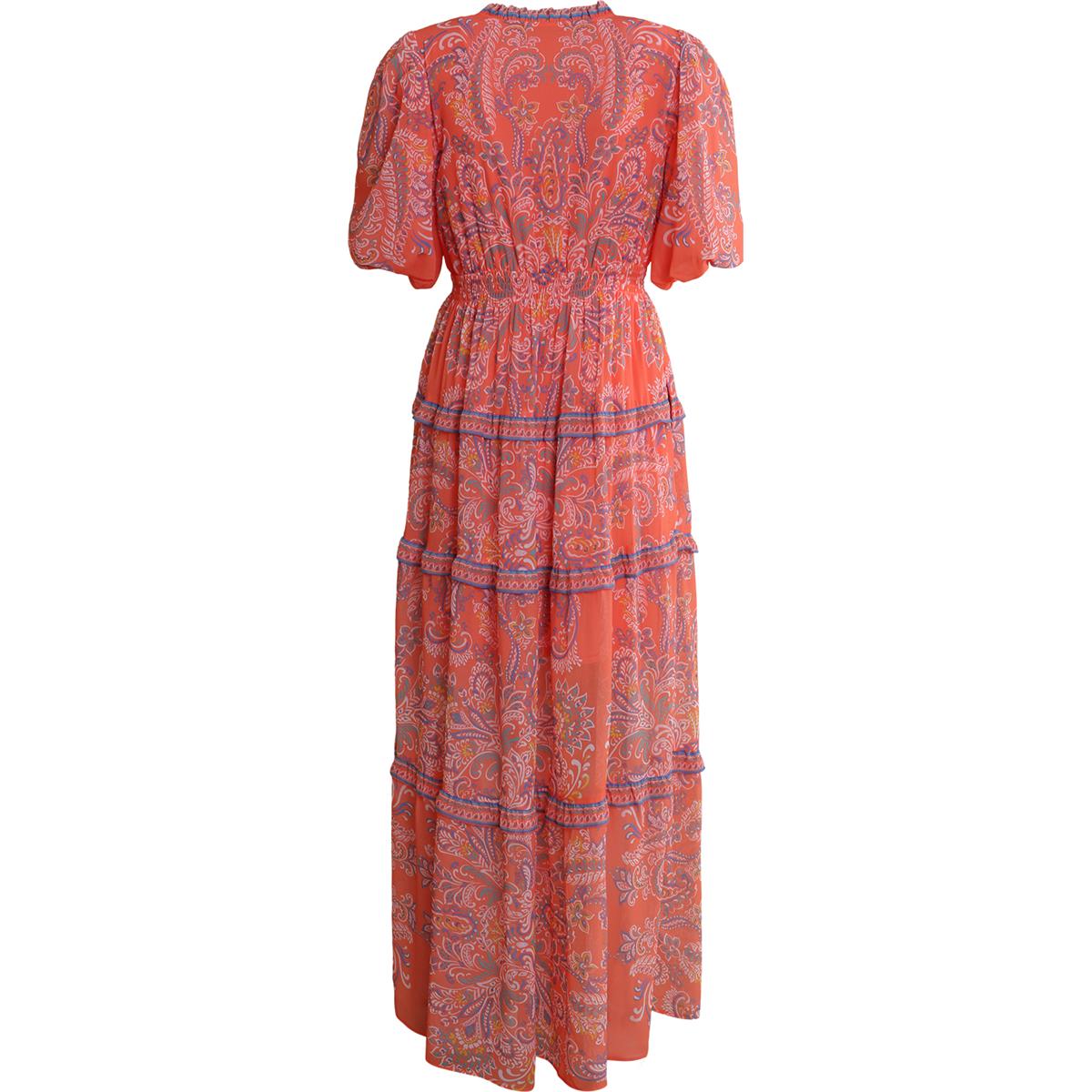 Elevate your wardrobe with this stunning Hale Bob v-neck dress, featuring a vibrant orange hue that commands attention. The flattering cap sleeves offer a refined silhouette, while the eye-catching pattern adds visual interest and versatility. Perfect for transitioning from day to evening, this fabulous piece combines comfort with contemporary style. A timeless addition to any fashion-forward collection.