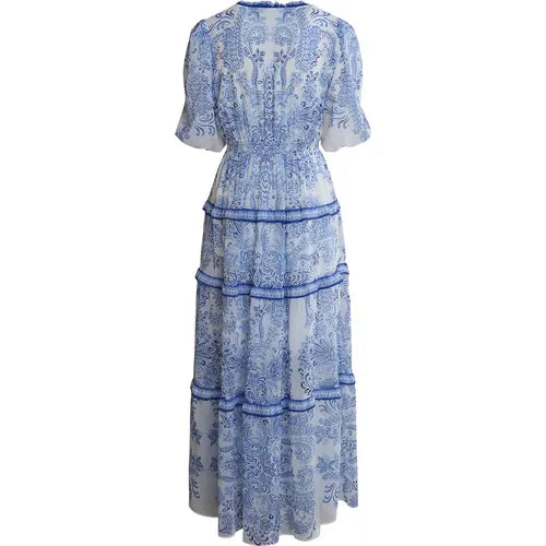 Elevate your wardrobe with the Hale Bob Buttercup Dress, a charming piece that combines effortless style with timeless appeal. Featuring delicate cap sleeves and a flattering V-neckline, this dress showcases a beautiful pattern that adds visual interest and personality. Perfect for casual outings or dressed-up occasions, it's a versatile addition to any collection. The thoughtful design ensures comfort and confidence with every wear.