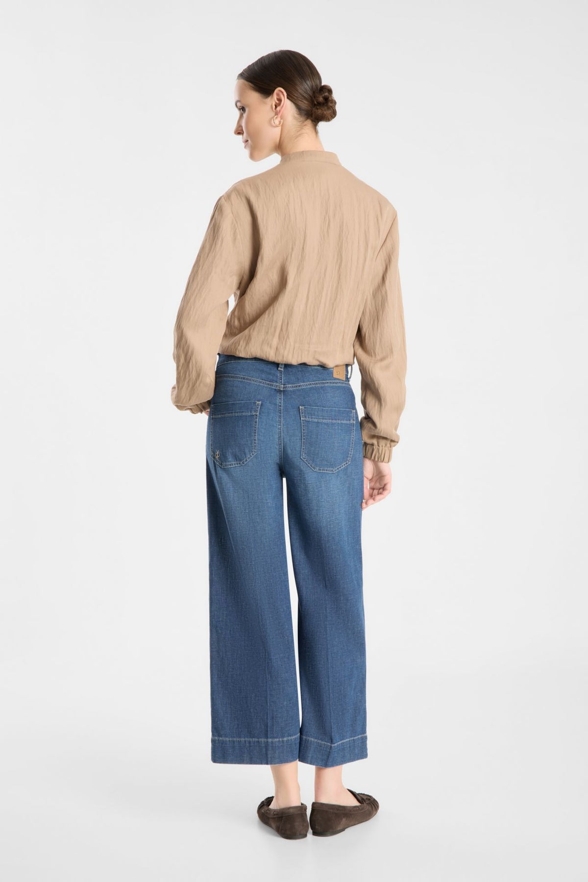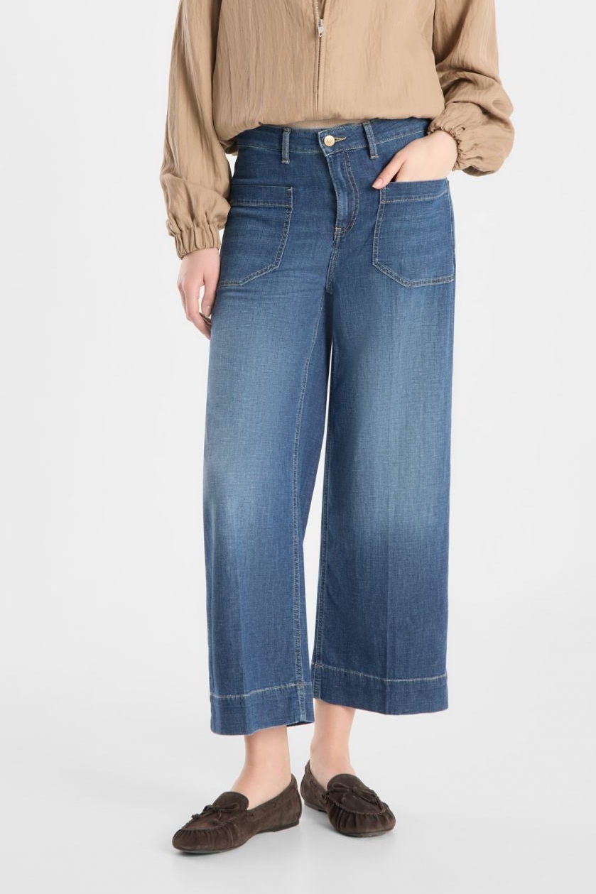 Get ready to elevate your denim game with the Raff Rossi Miru Soft Touch Denim jeans. These premium Raffaello Rossi jeans combine exceptional comfort with timeless style, featuring a soft touch fabric that feels as good as it looks. High-waisted silhouette with a wide, cropped leg and generous hemline creates a flattering, contemporary fit. Functional front and back patch pockets add practical style. Say goodbye to uncomfortable denim and hello to effortless elegance—perfect for any occasion, from casual weekends to dressed-up evenings. Experience the difference premium quality and thoughtful design can make in your everyday wardrobe.