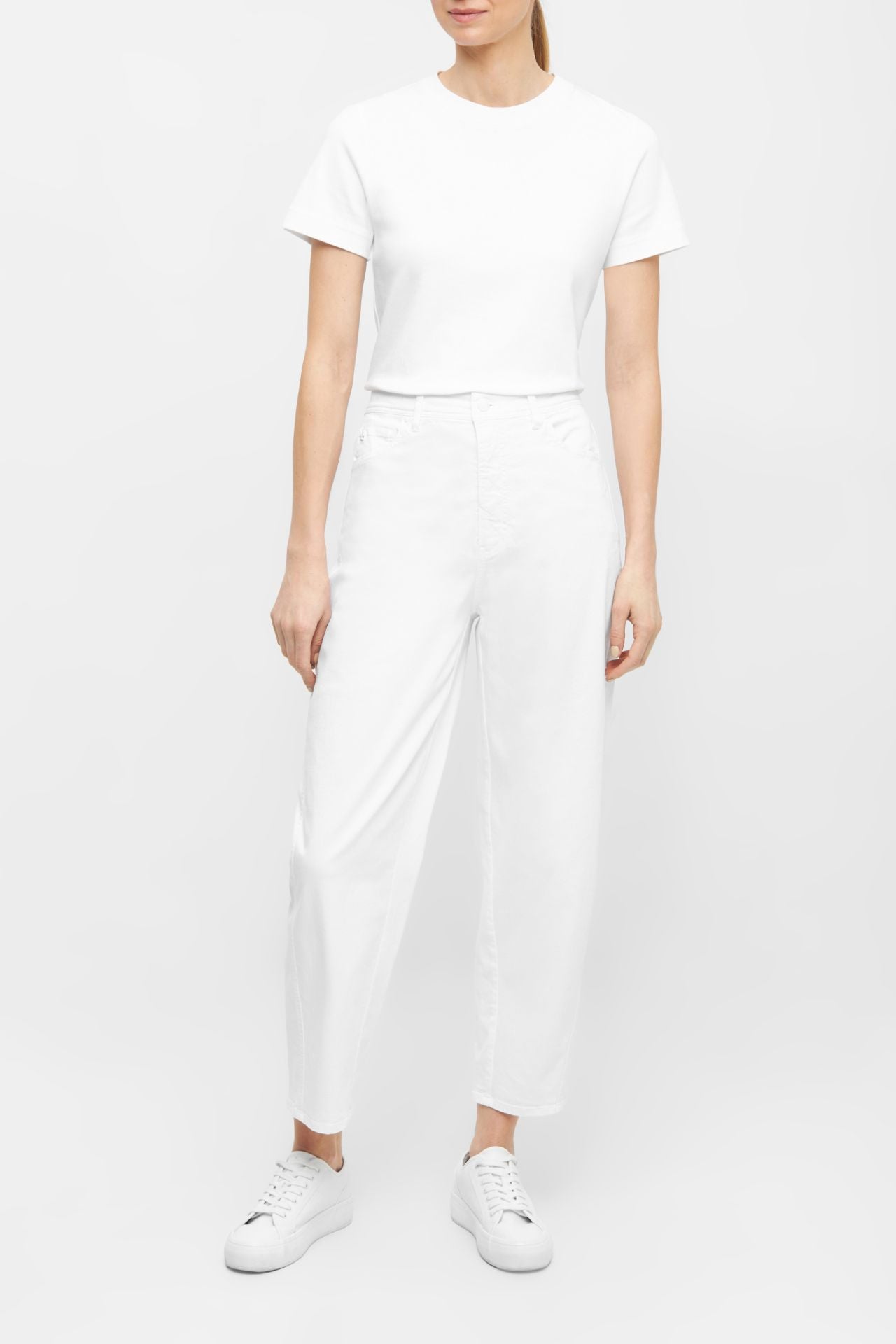 Discover effortless style with the Raffaello Rossi Hale Barrel Cut in crisp white. These 5-pocket jeans feature a flattering high-waist silhouette and distinctive O-shaped details for a contemporary look. Crafted from noble light cross-stretch colour denim with a fine structure, each pair is individually dyed to ensure uniqueness. The soft, breathable fabric delivers exceptional comfort for all-day wear, while the casual aesthetic makes them perfect for mixing with your everyday wardrobe. Experience the perfect balance of quality craftsmanship and wearable sophistication.