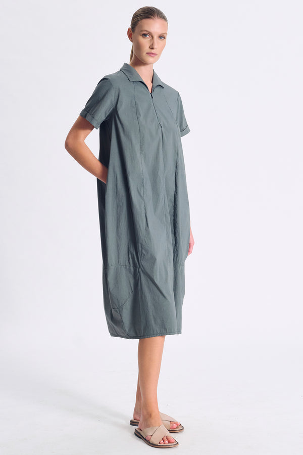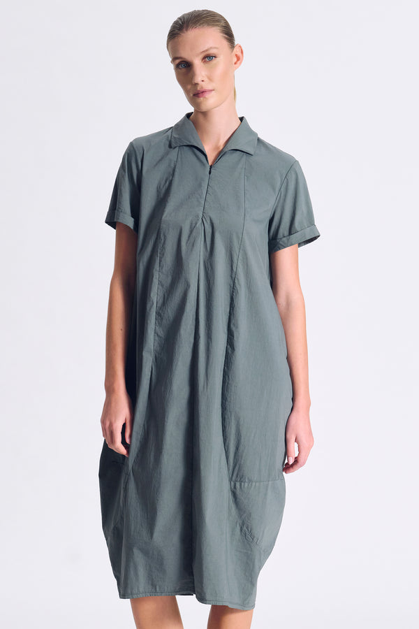 Style meets comfort in this Transit M225 dress. Crafted from stretch poplin fabric, it features a flattering bombé silhouette with short sleeves and a convenient front zip closure for easy dressing. The structured shape provides a polished look perfect for work or weekend wear. Also available in beige