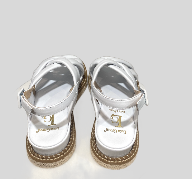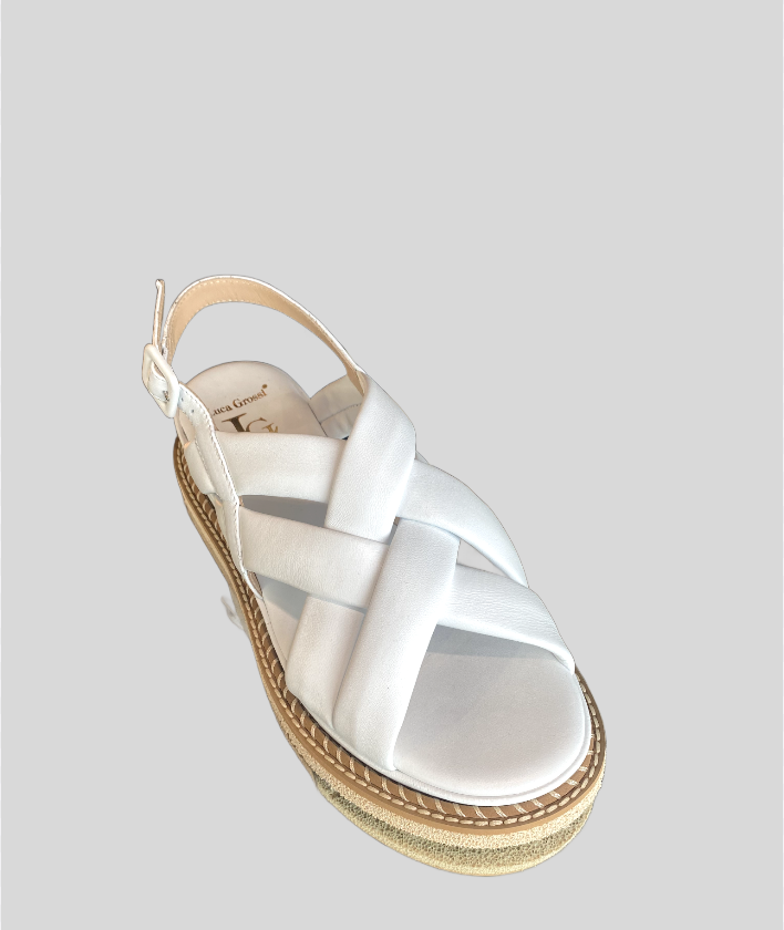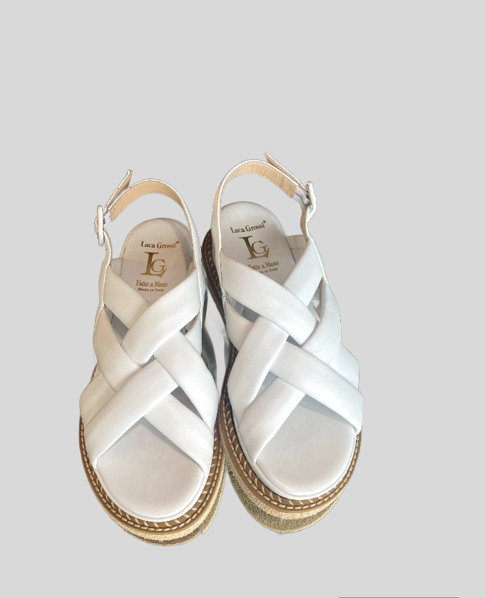 Elevate your summer style with the Luca Grossi H760S Sandal, featuring a striking beige wicker trim paired with crisp white leather criss-cross detailing. This sophisticated design delivers an effortlessly cool aesthetic perfect for warm-weather dressing. The combination of natural wicker and clean leather accents creates a modern, versatile look that transitions seamlessly from casual outings to relaxed evenings.