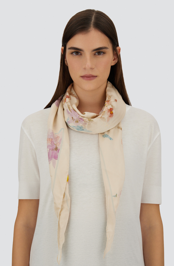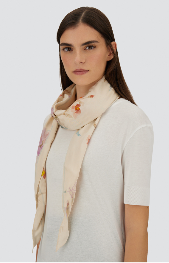 Scarf made of fine, shiny satin with a soft feel. Featuring a floral print that makes it versatile to embellish casual occasions and more elegant combinations.