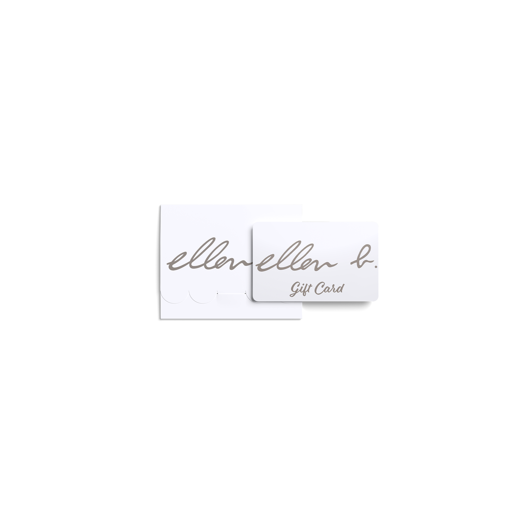 Give the gift of choice with the Ellen b Gift Card! Perfect for any occasion, it lets your loved ones pick out their favorite styles and treats from our collection. Easy to use and full of possibilities, it's the playful way to surprise someone special.